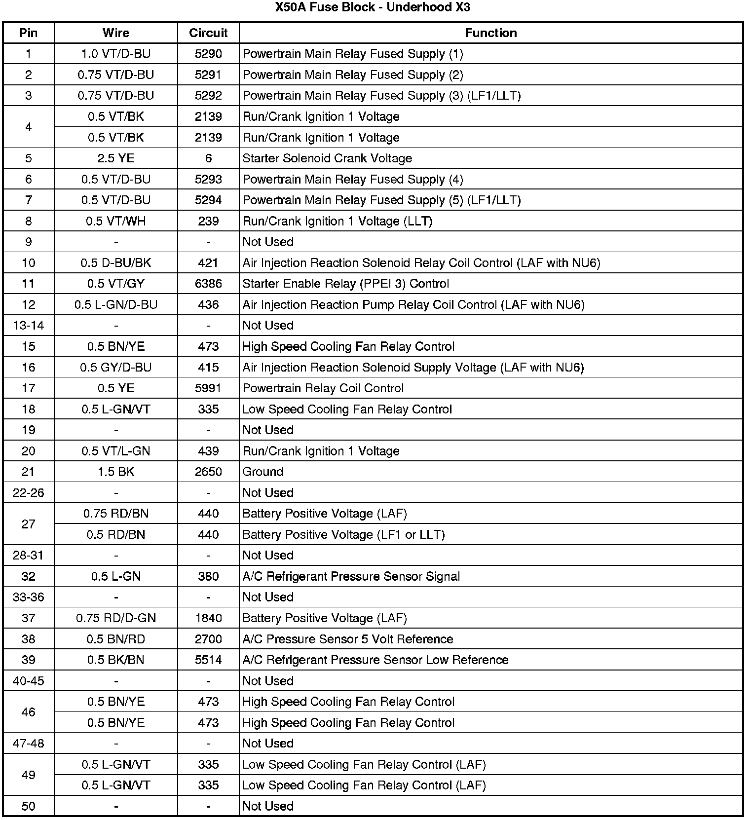 X50A Fuse Block - Underhood X3