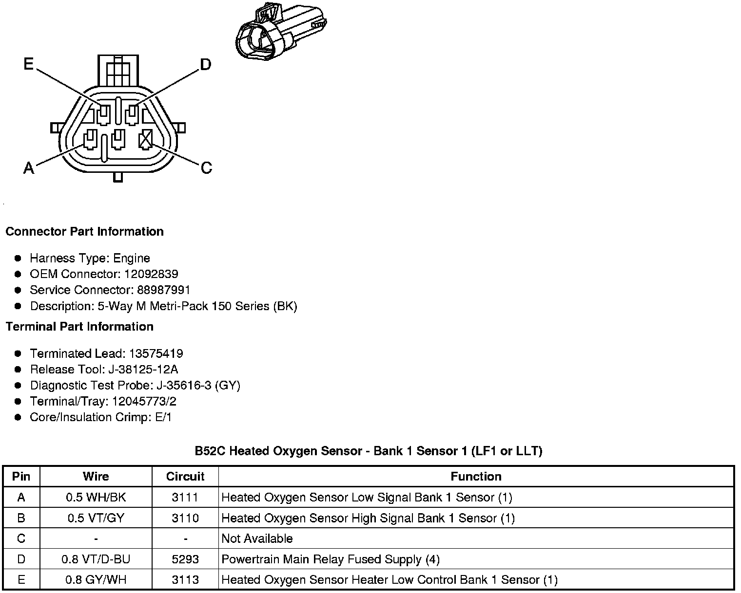 B52C Heated Oxygen Sensor - Bank 1 Sensor 1 (LF1 or LLT)