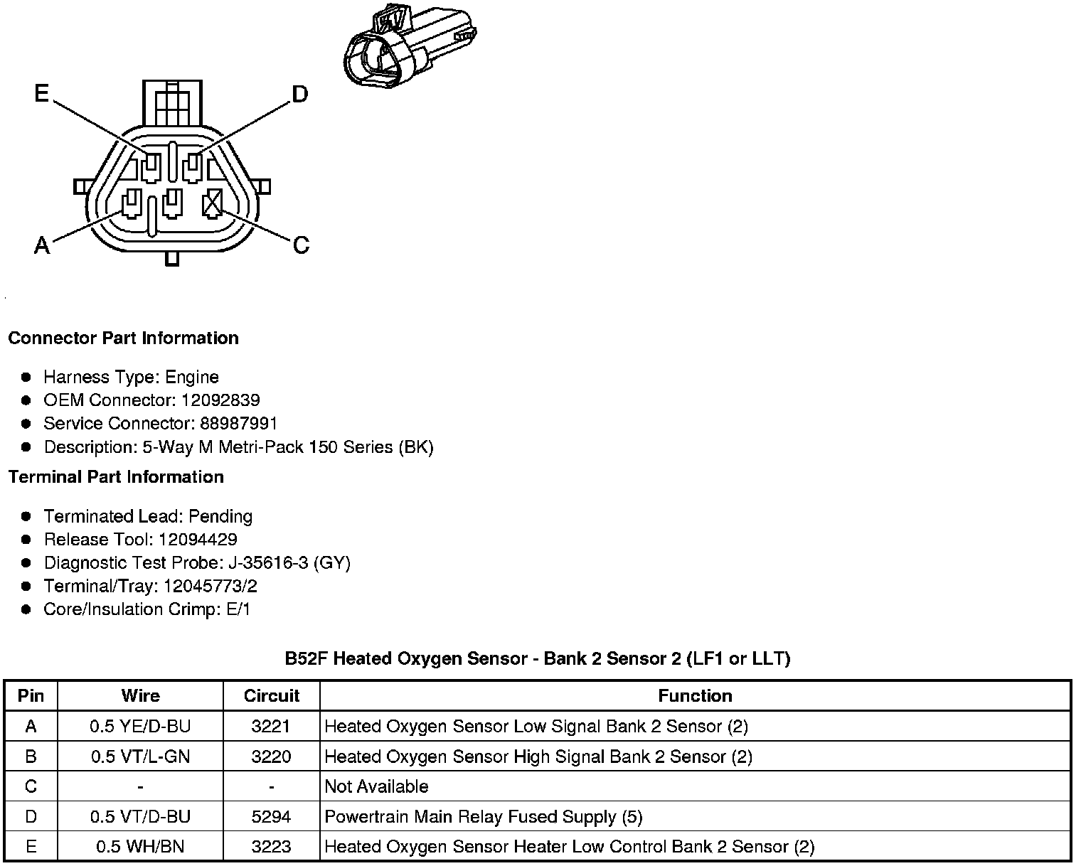 B52E Heated Oxygen Sensor - Bank 2 Sensor 1 (LF1 or LLT)
