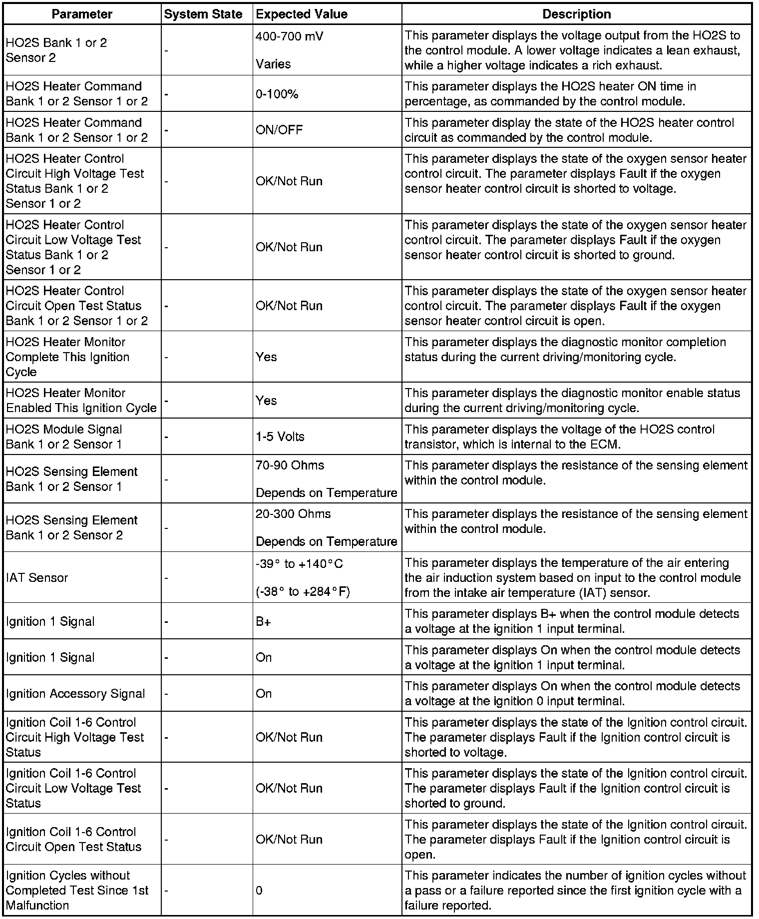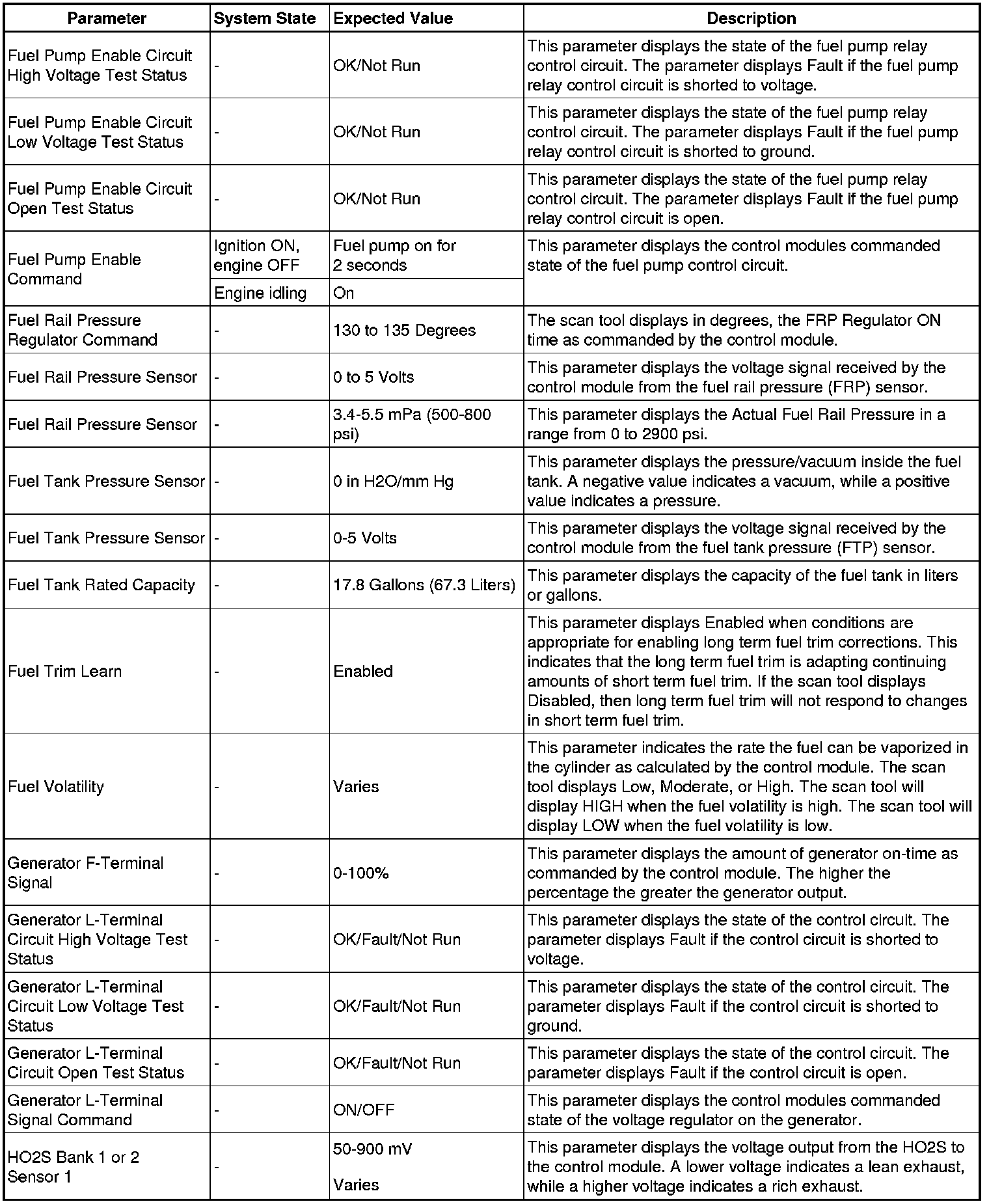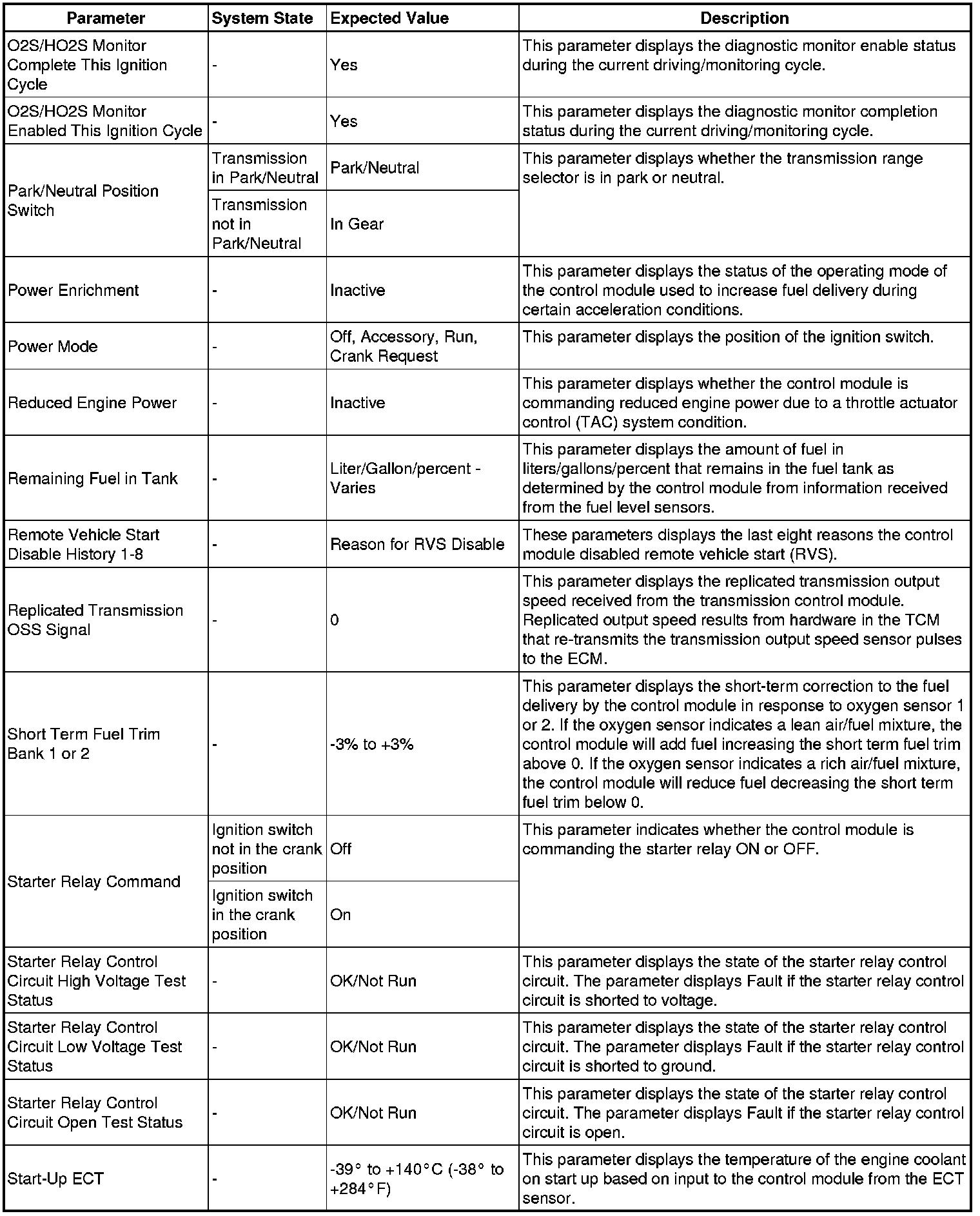 The Engine Control Module Scan Tool Data List contains all engine-related parameters that are available on the scan tool. The list is arranged in alphabetical order. A given parameter may appear in any one of the data lists, and in some cases may appear more than once, or in more than one data list in order to group certain related parameters together.