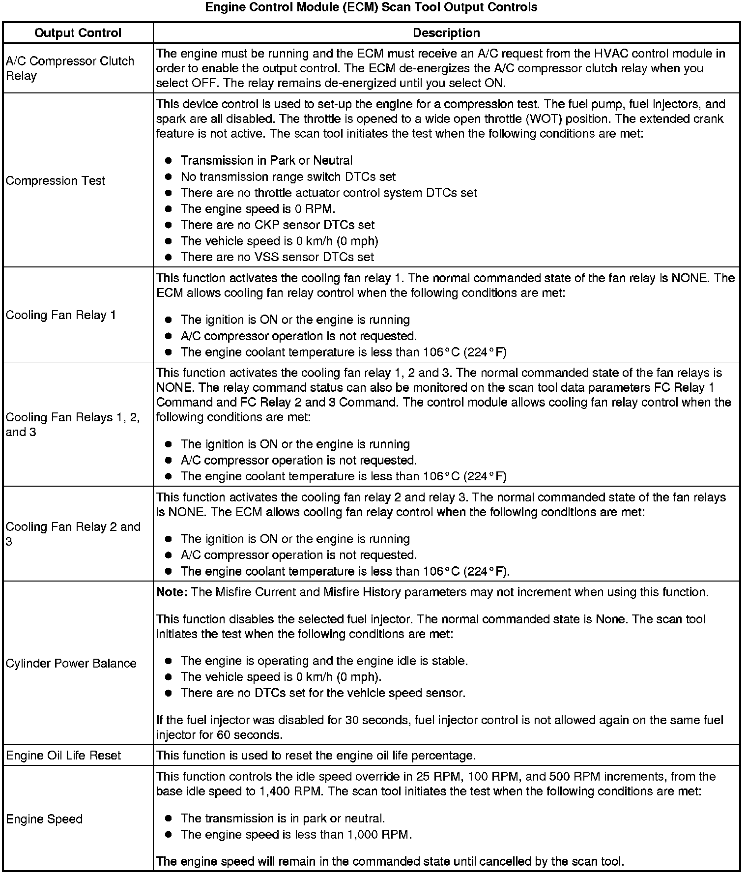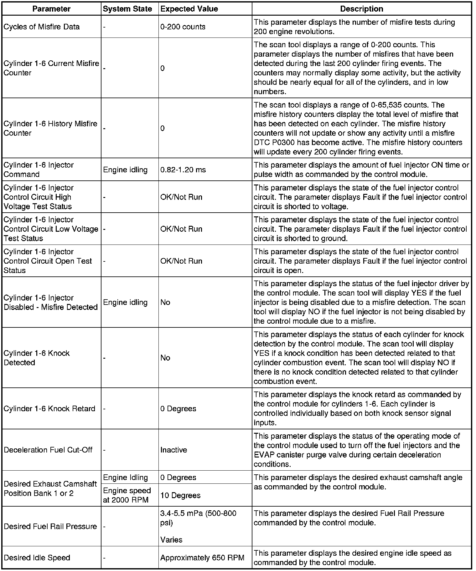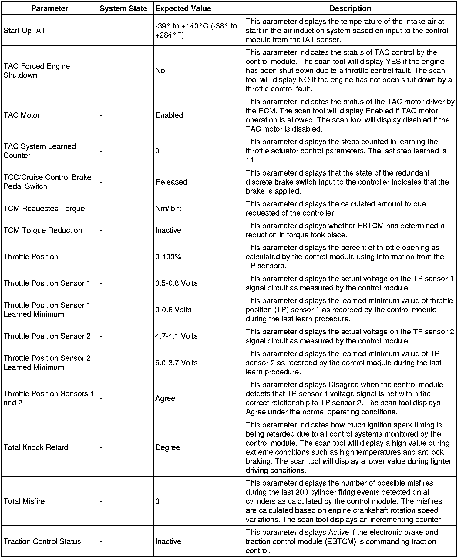 The Engine Control Module Scan Tool Data List contains all engine-related parameters that are available on the scan tool. The list is arranged in alphabetical order. A given parameter may appear in any one of the data lists, and in some cases may appear more than once, or in more than one data list in order to group certain related parameters together.