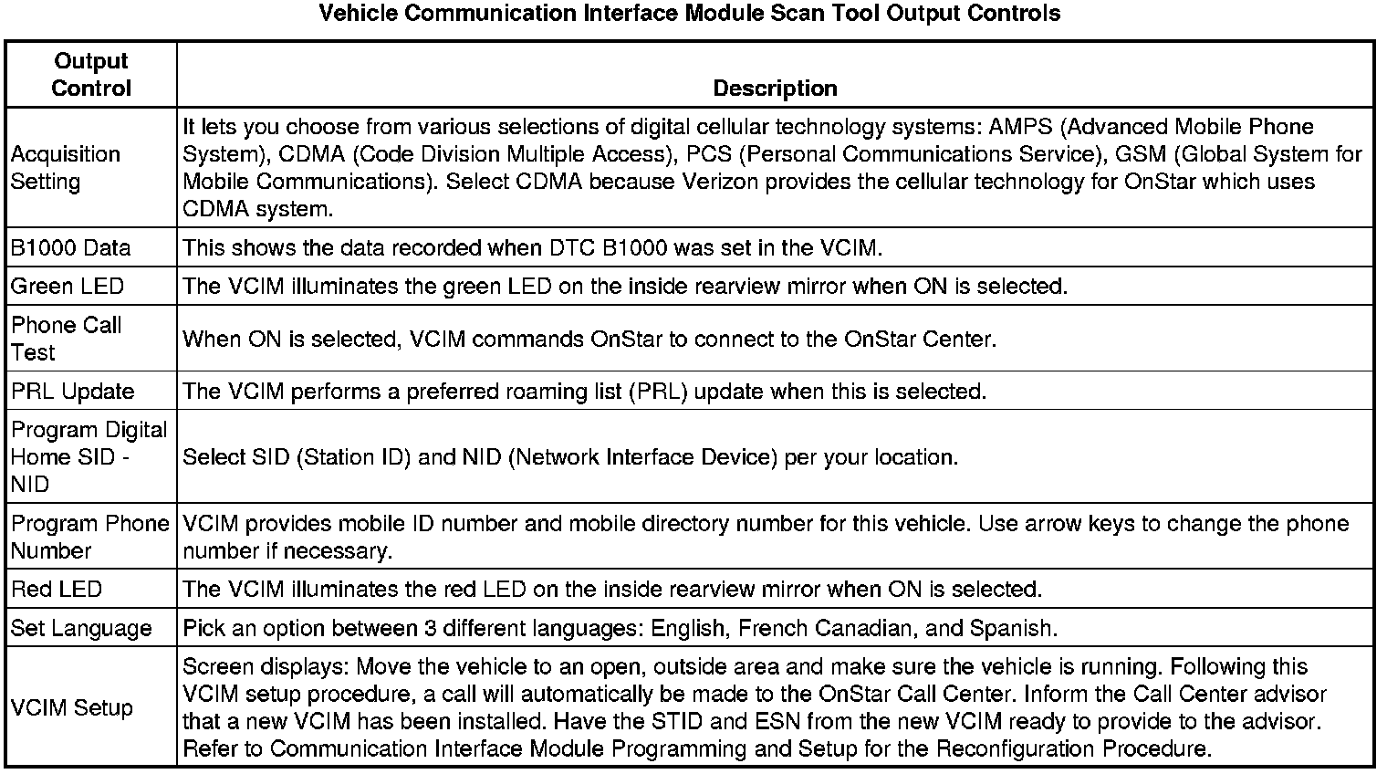 Communication Interface Module Scan Tool Information