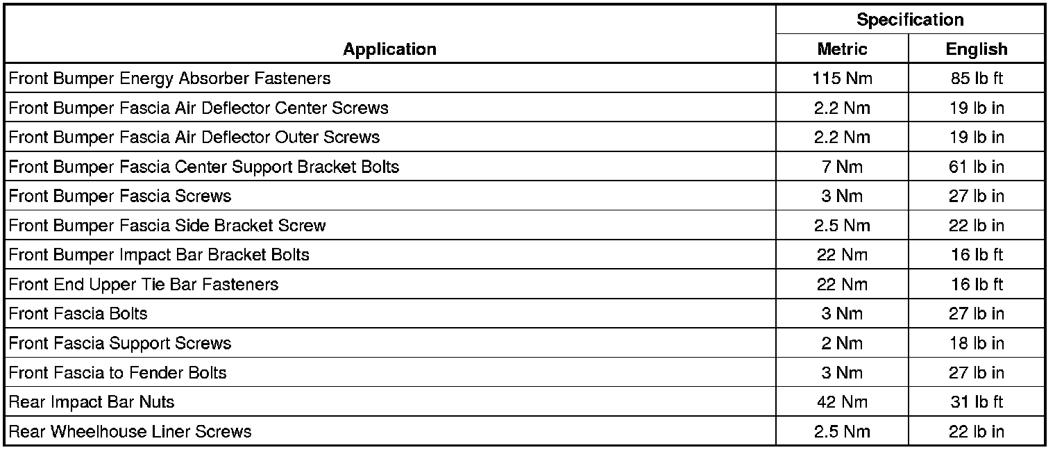Bumper: Specifications