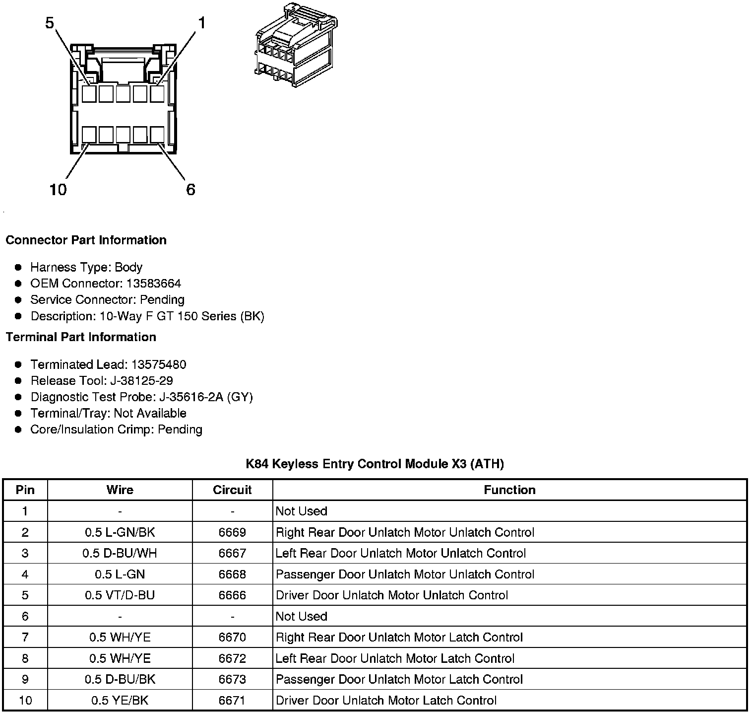 K84 Keyless Entry Control Module X1 (BTM)