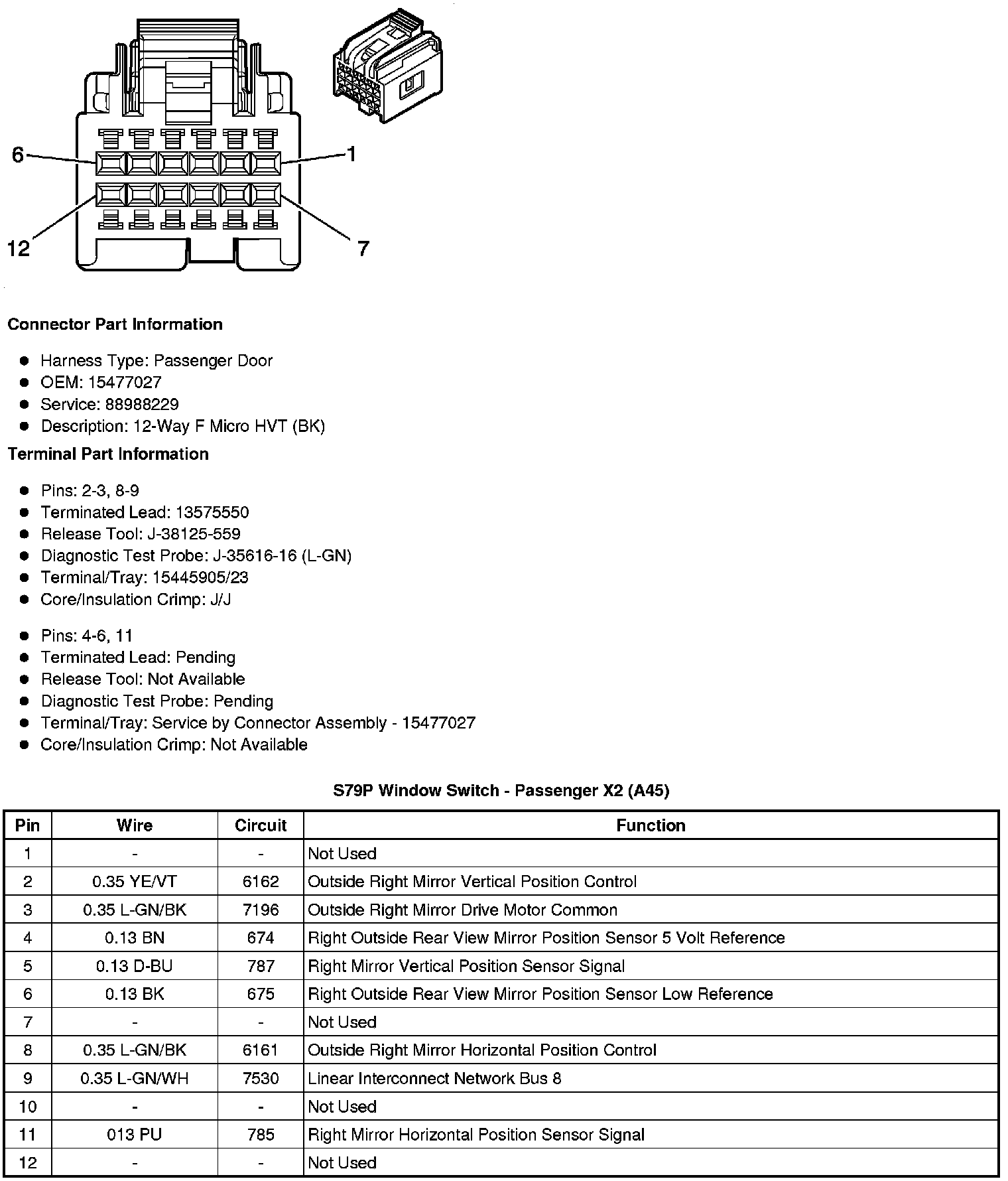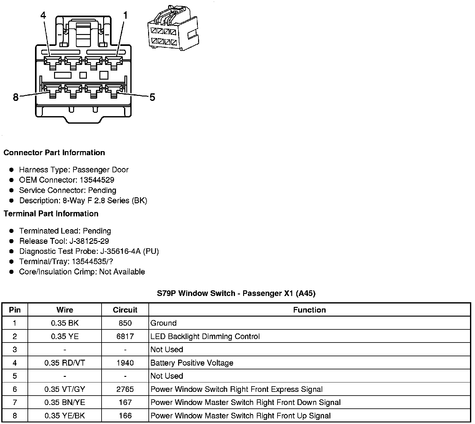 S79P Window Switch - Passenger X1 (A45)
