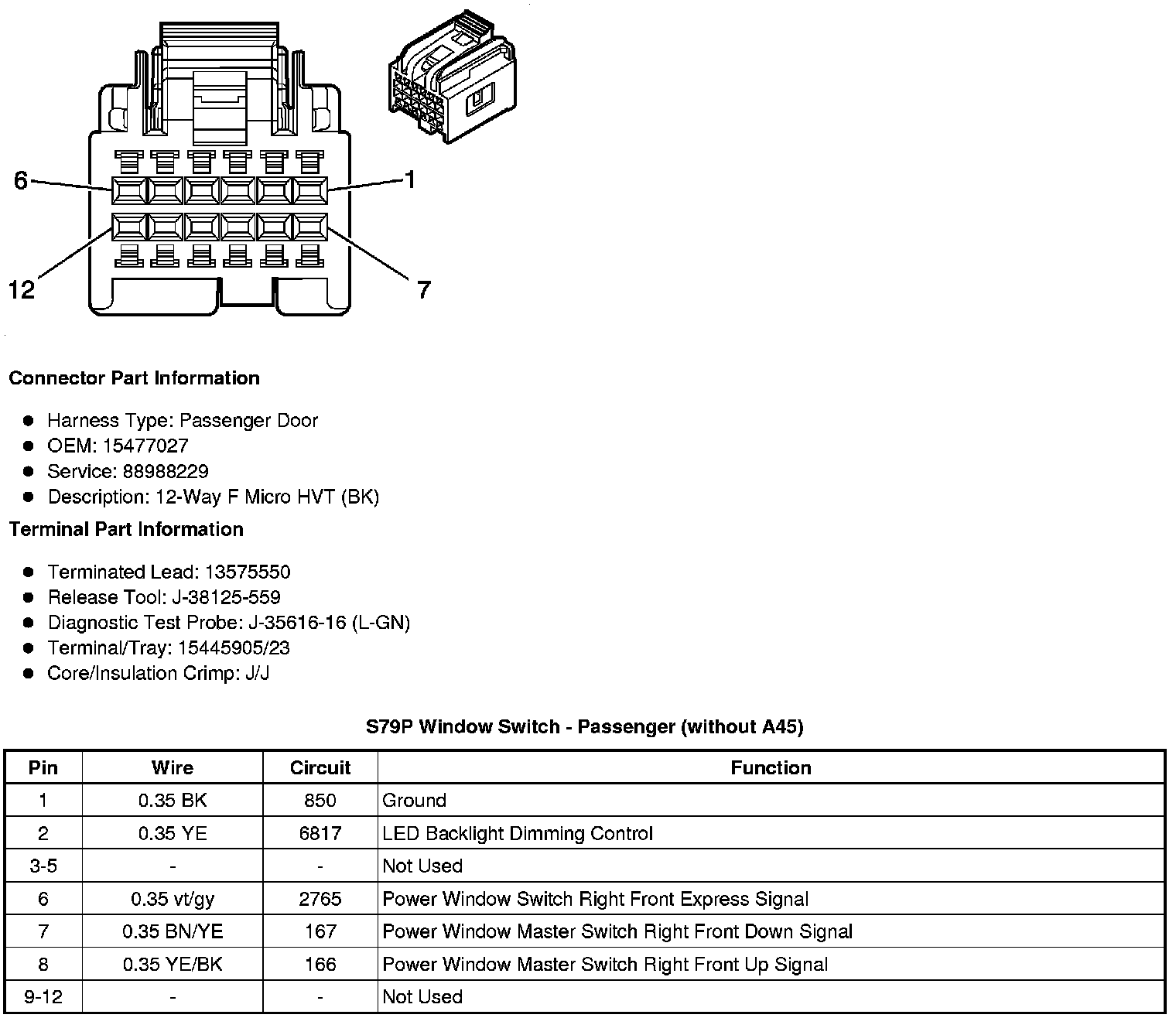 S79P Window Switch - Passenger (without A45)