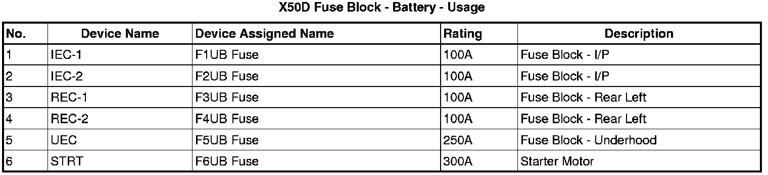 X50D Fuse Block - Battery X6 (DB3, KU1, F45, F46, UWG or UVD)