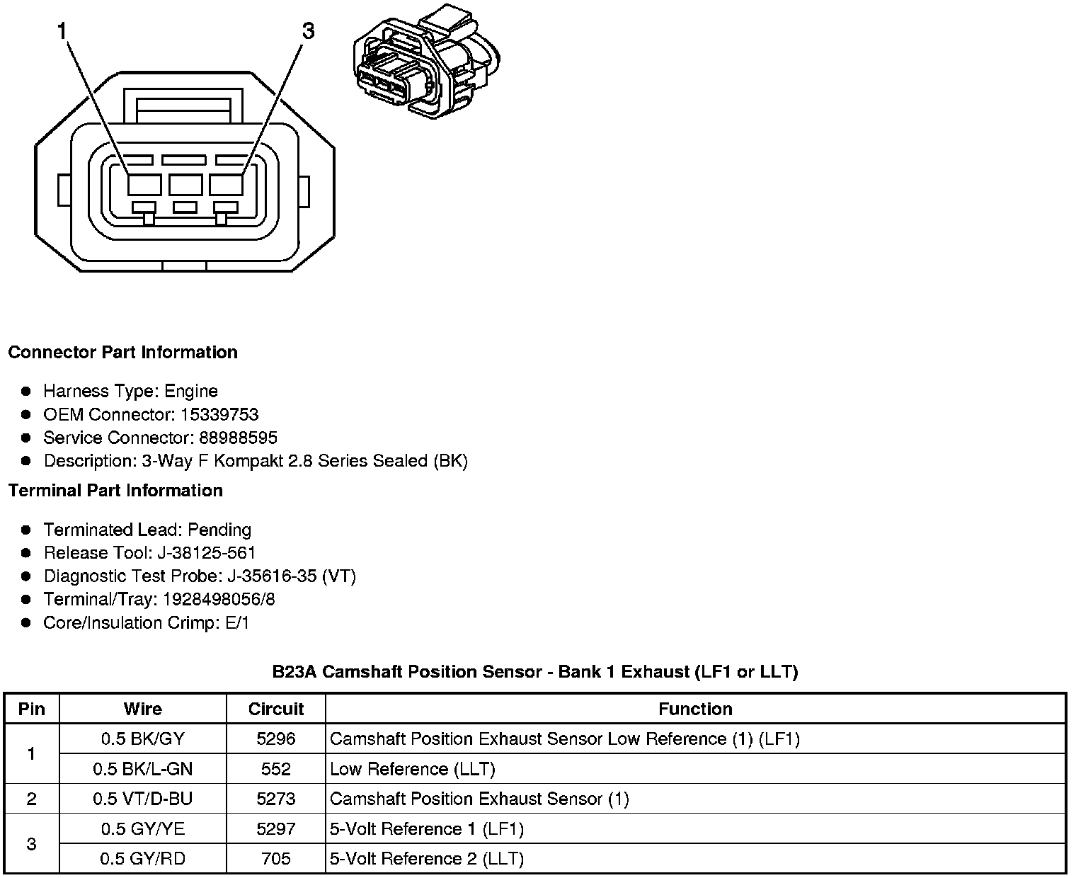 B23A Camshaft Position Sensor - Bank 1 Exhaust (LF1 or LLT)