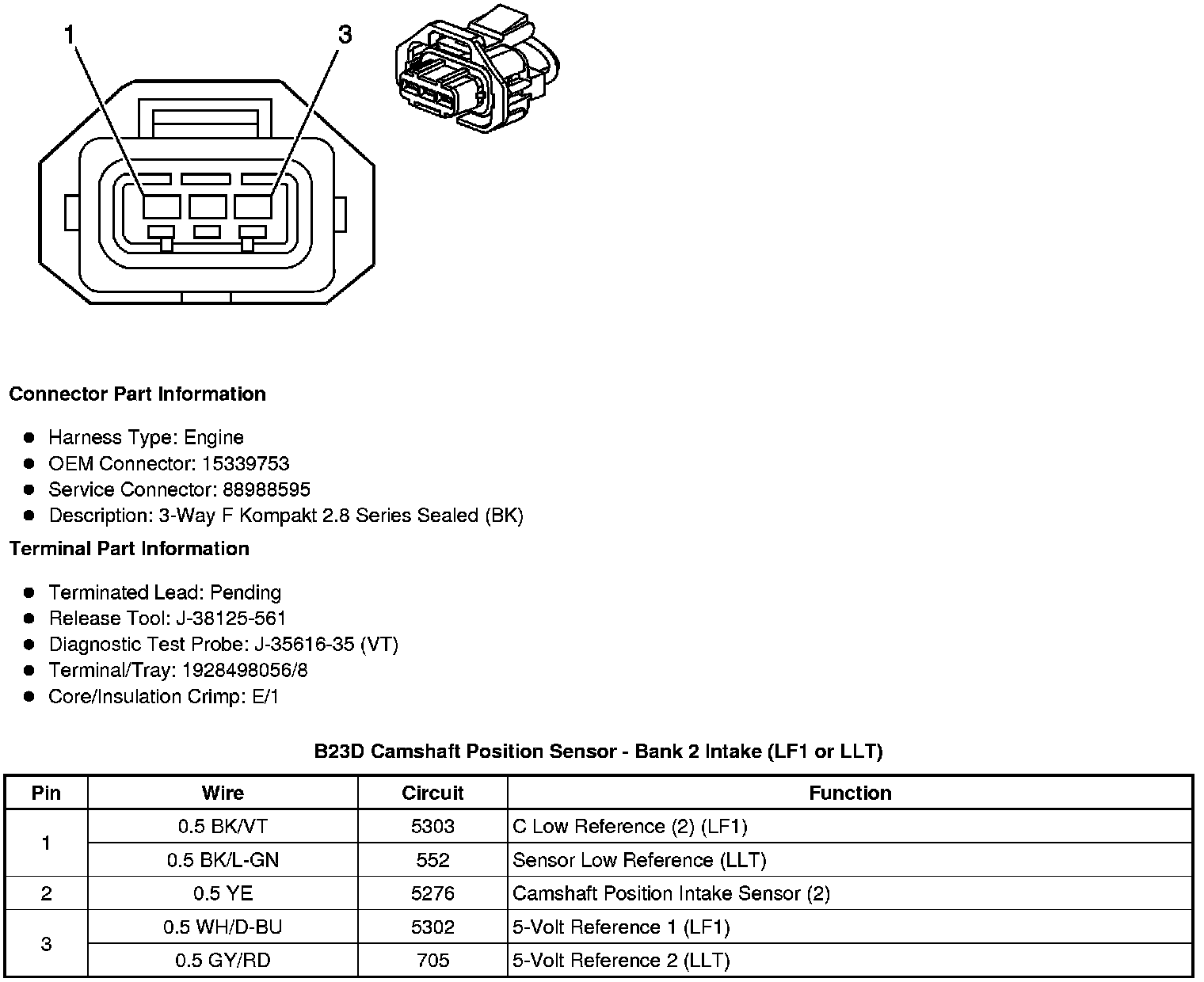 B23D Camshaft Position Sensor - Bank 2 Intake (LF1 or LLT)