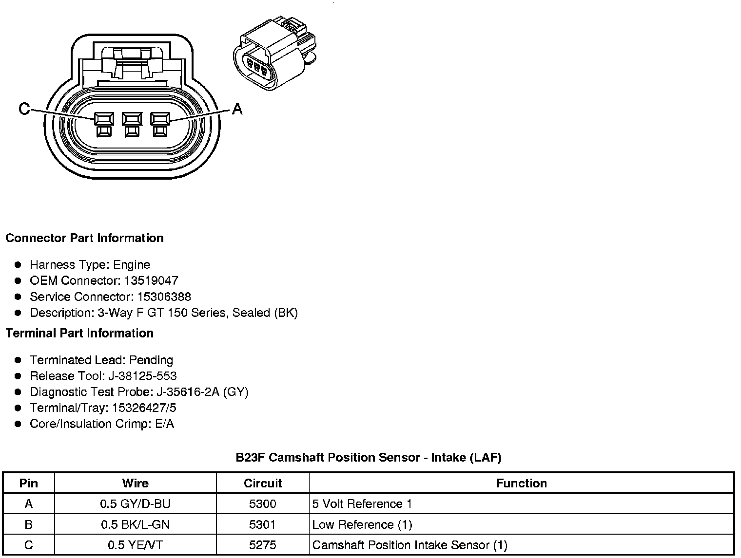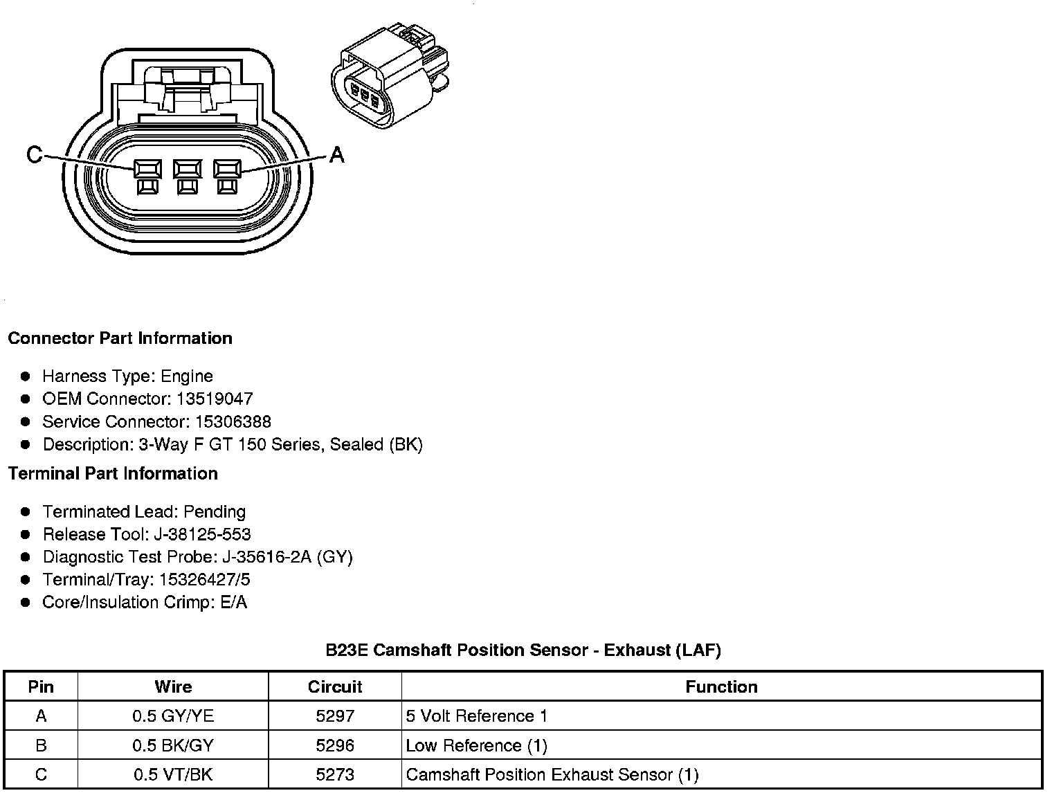 B23C Camshaft Position Sensor - Bank 2 Exhaust (LF1 or LLT)