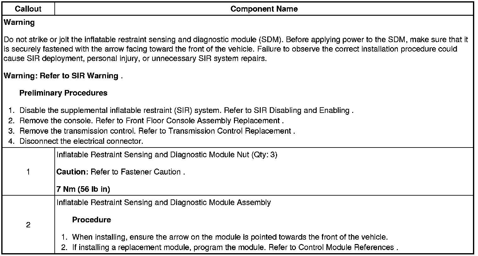 Inflatable Restraint Sensing and Diagnostic Module Replacement