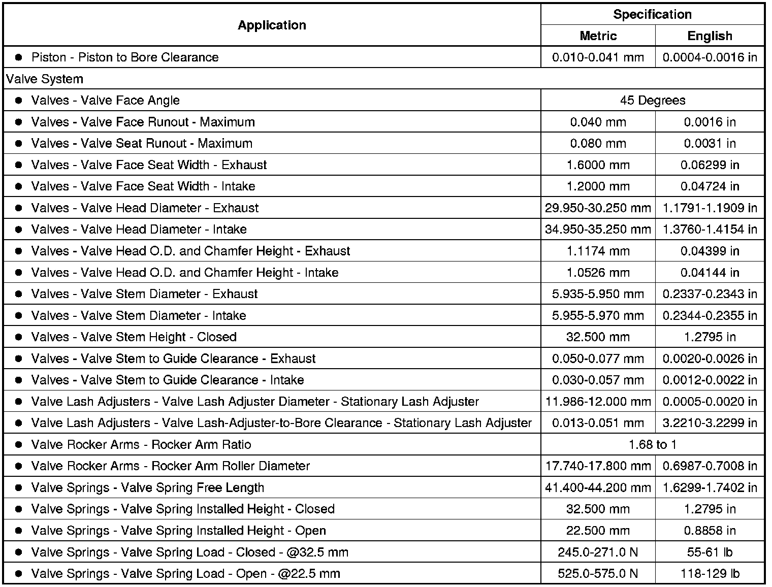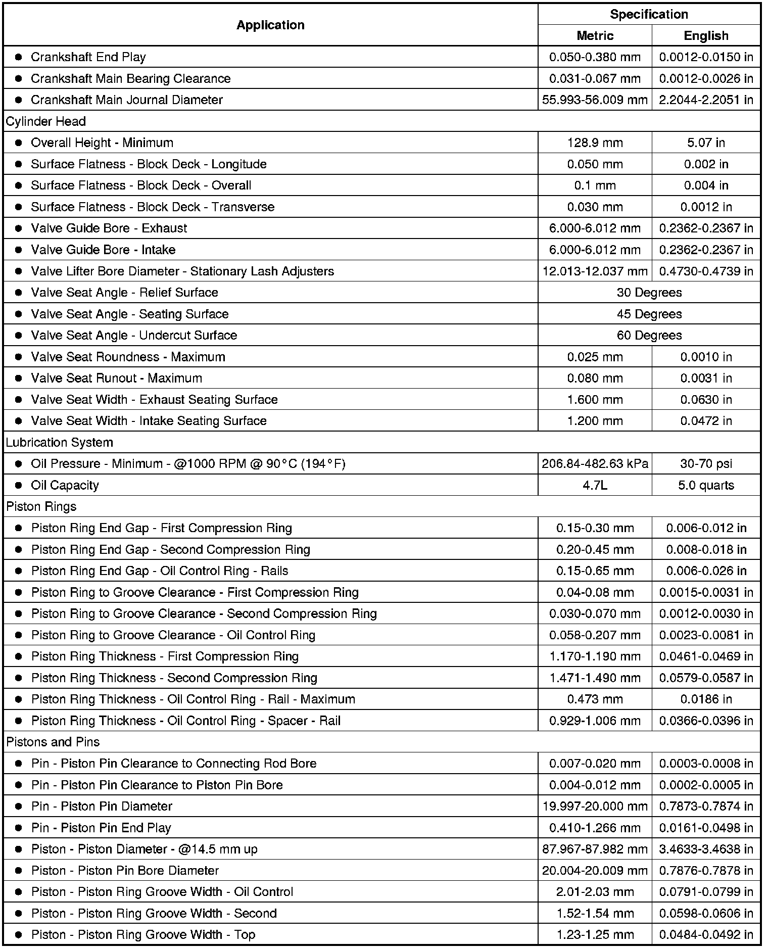 Engine Mechanical Specifications (LAF)