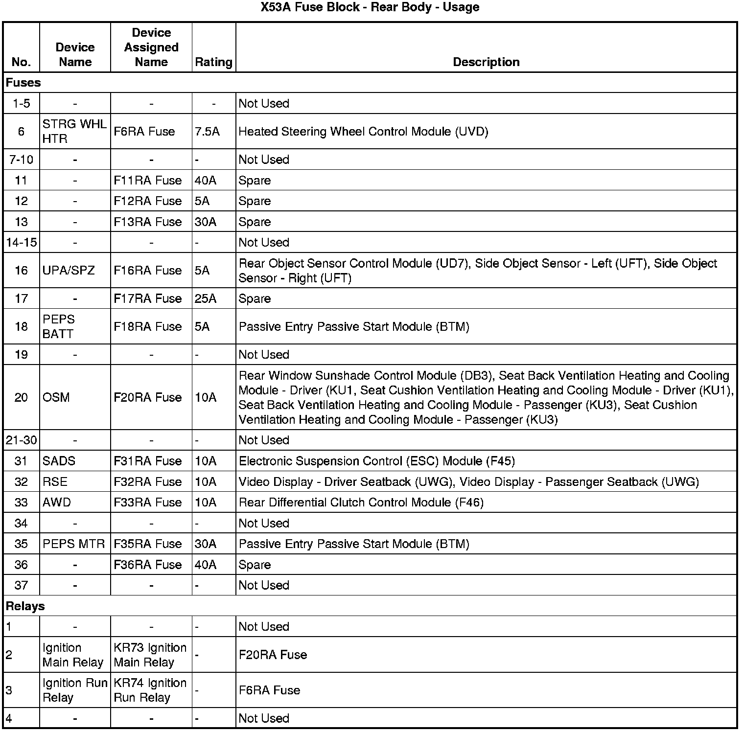 X53A Fuse Block - Rear Body X4 (ATH, DB3, KU1, F45, F46, UD7, UFT, UWG or UVD)