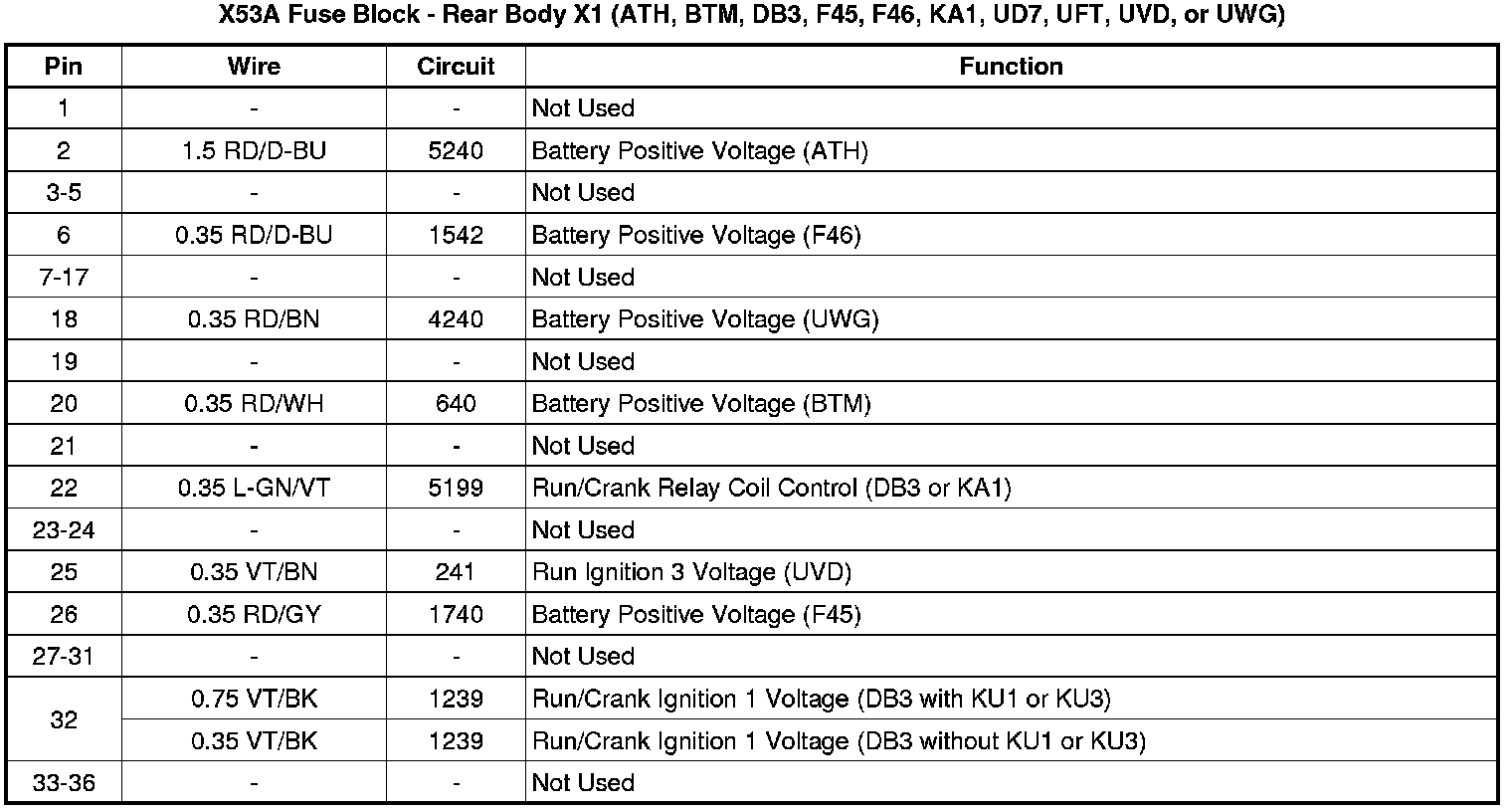 X53A Fuse Block - Rear Body X1 (ATH, BTM, DB3, F45, F46, KA1, UD7, UFT, UVD, or UWG)