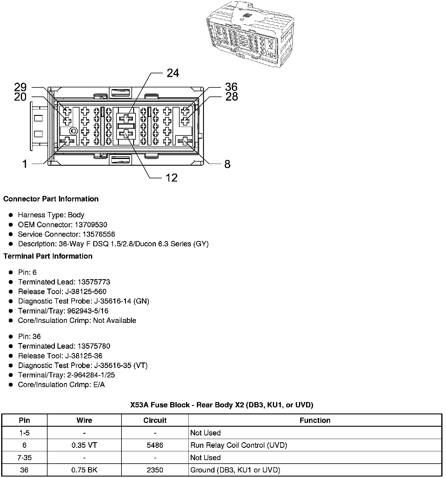 X53A Fuse Block - Rear Body X2 (DB3, KU1, or UVD)