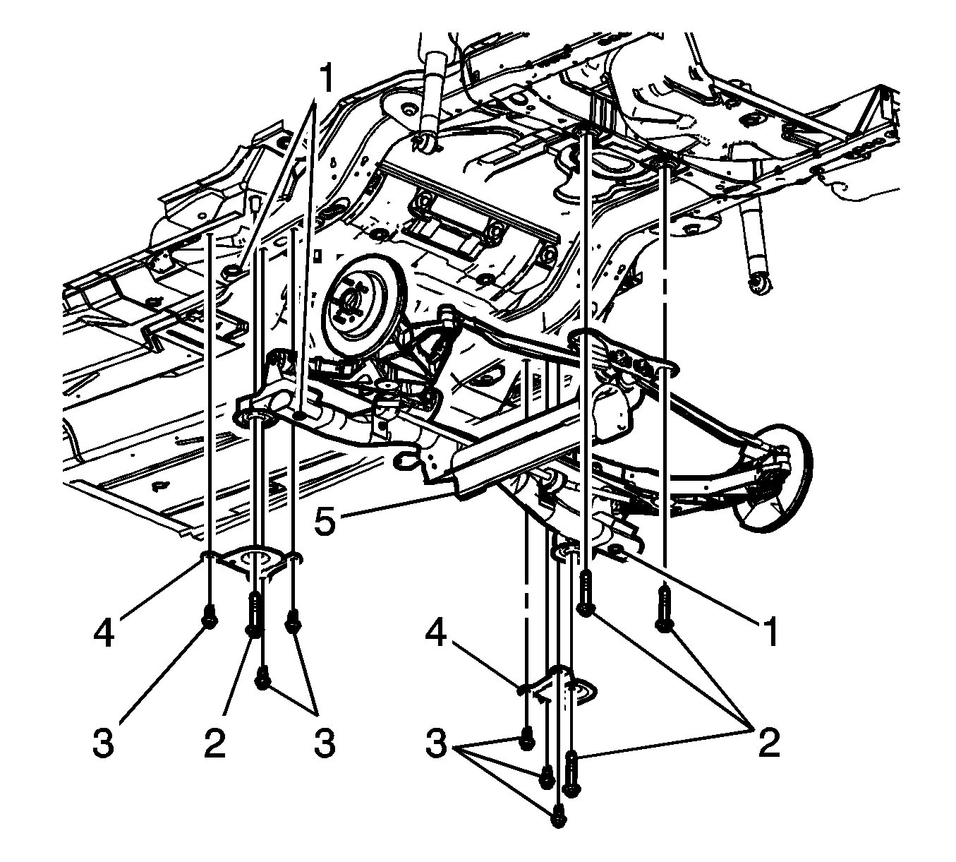 8.Remove the brake calipers and support calipers from vehicle underbody. Refer to Rear Brake Caliper Replacement .