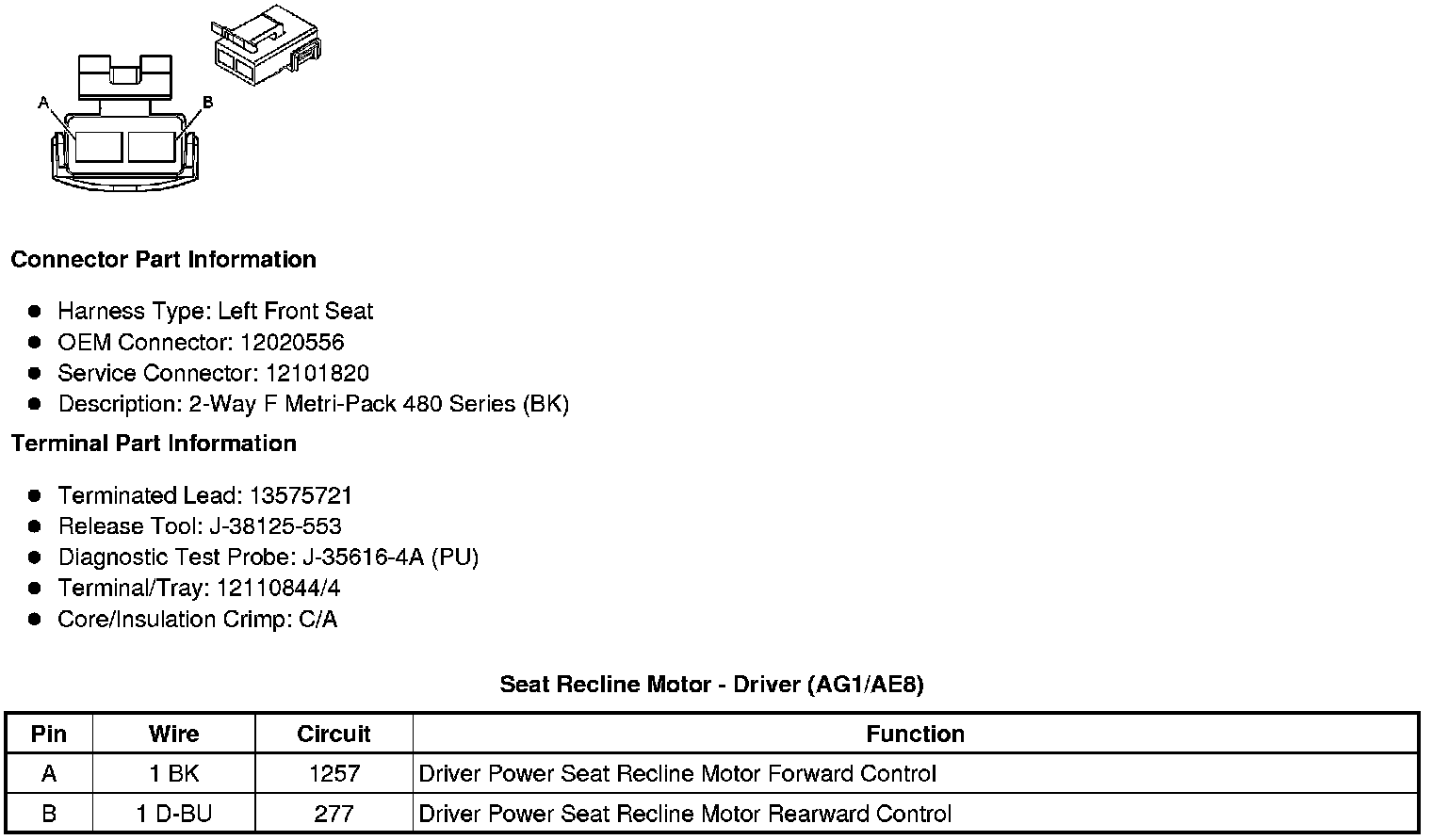 Seat Recline Motor - Driver (AG1/AE8)