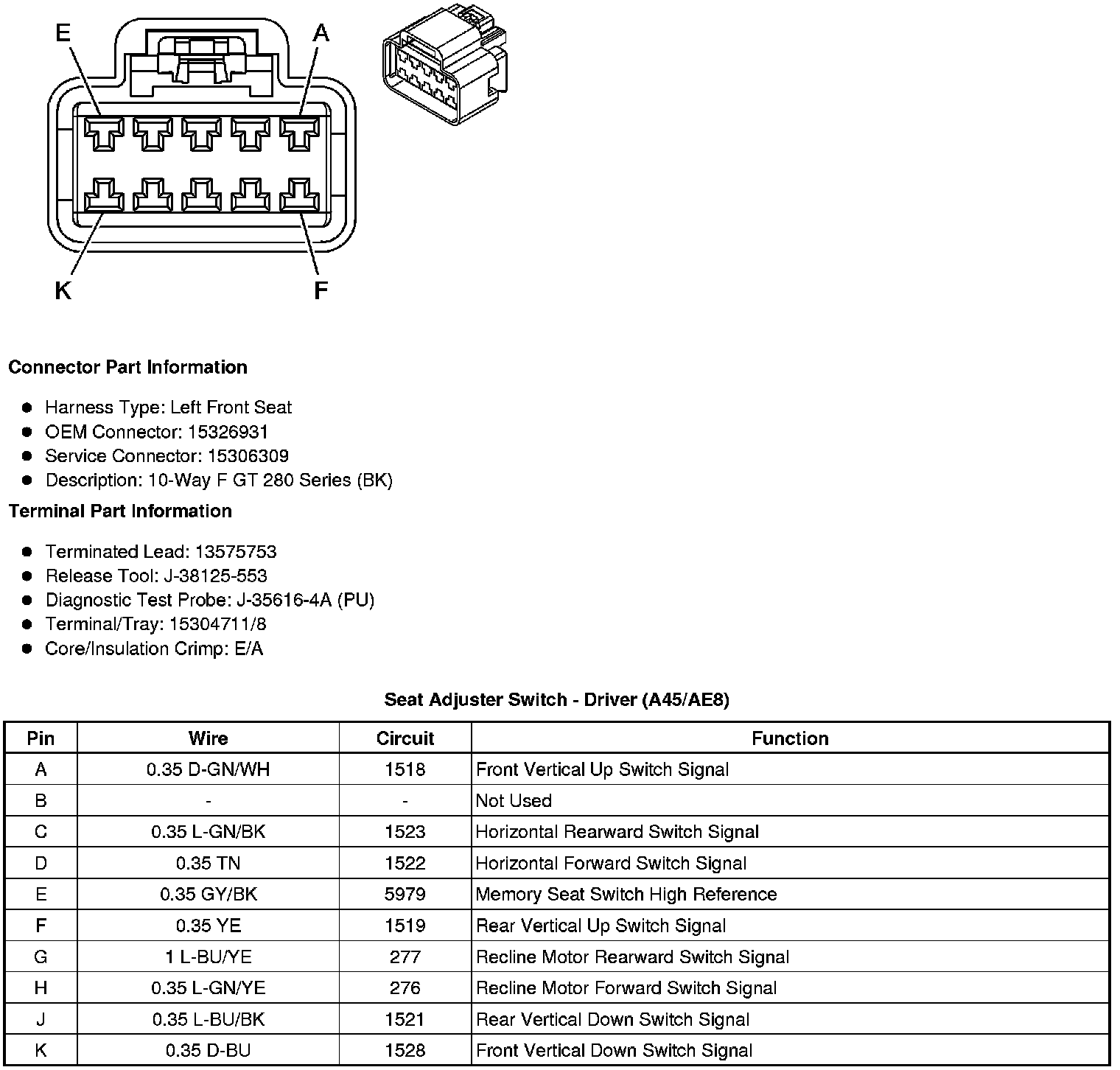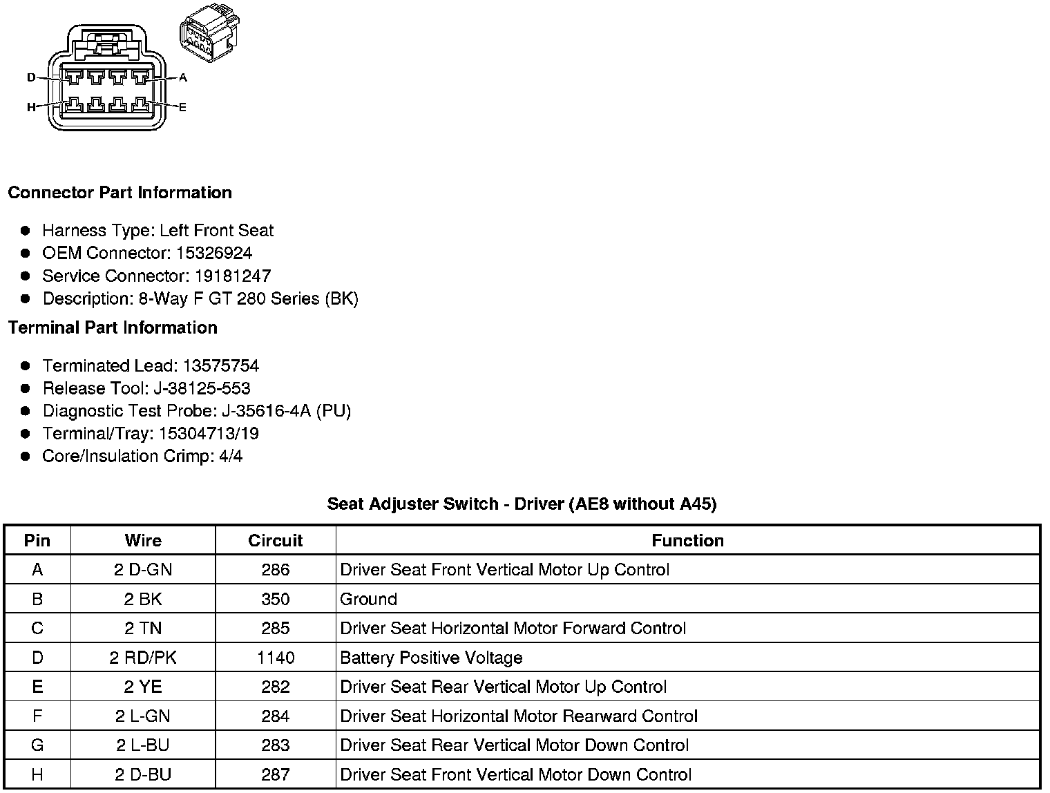 Seat Adjuster Switch - Driver (A45/AE8)
