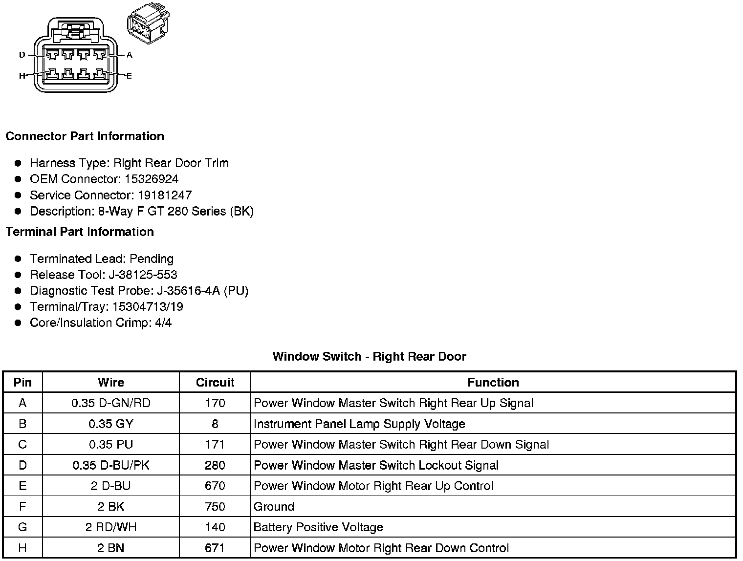 Window Switch - Right Rear Door