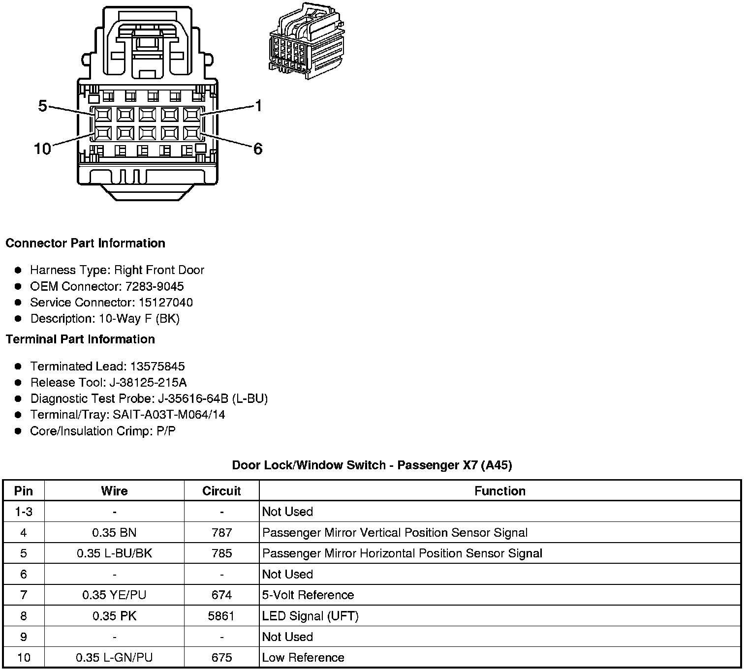 Door Lock/Window Switch - Passenger X7 (A45)