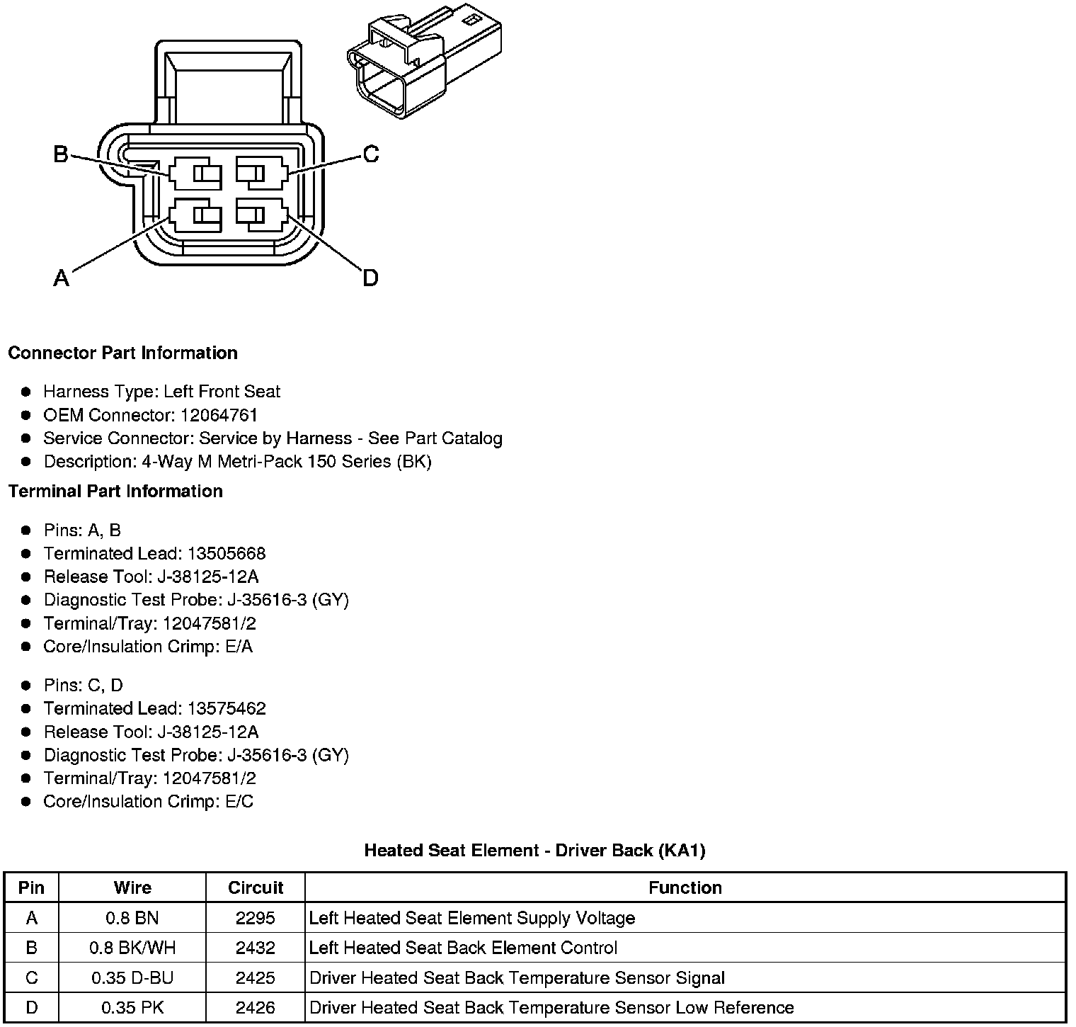 Heated Seat Element - Driver Back (KA1)
