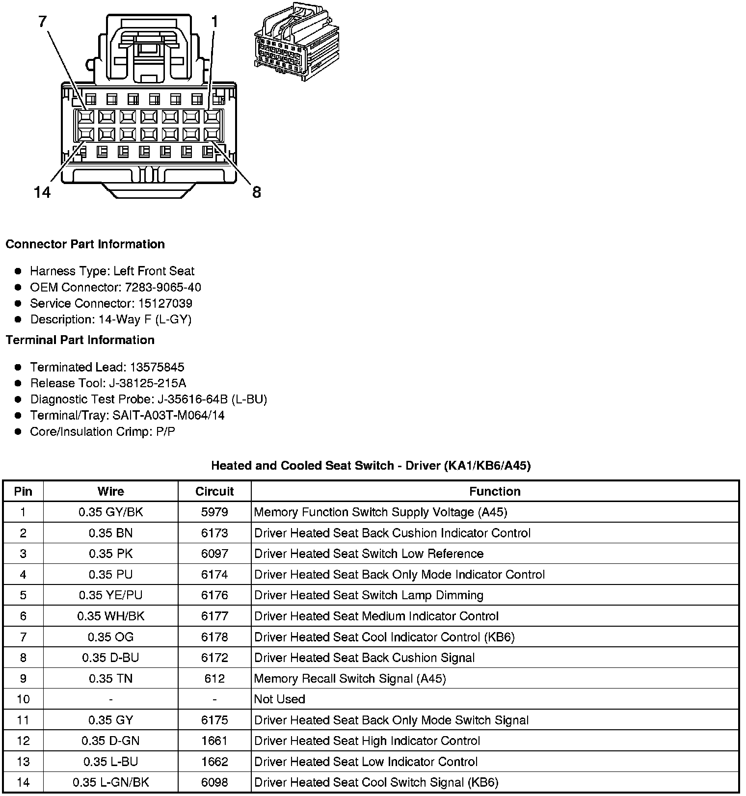 Heated and Cooled Seat Switch - Driver (KA1/KB6/A45)