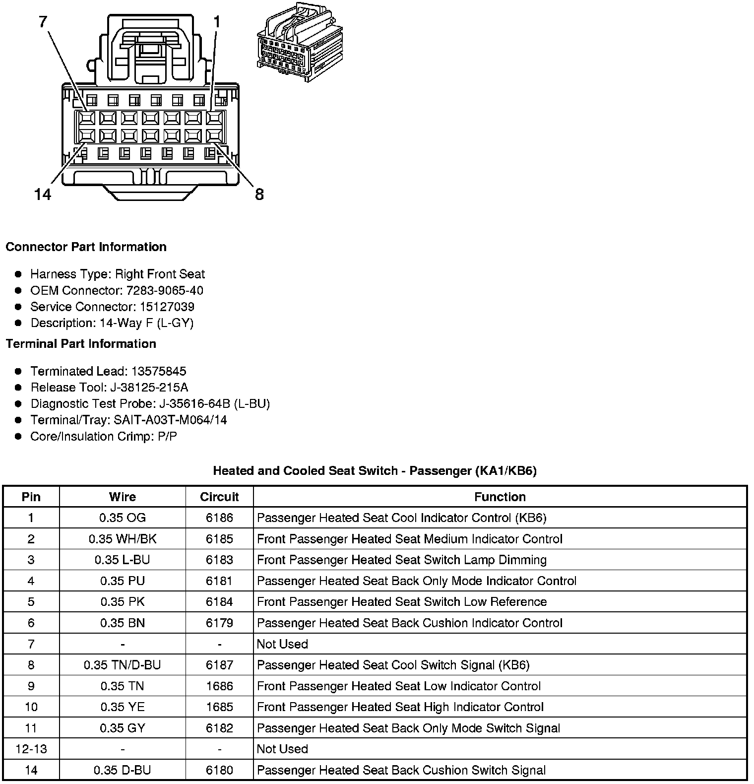 Heated and Cooled Seat Switch - Passenger (KA1/KB6)