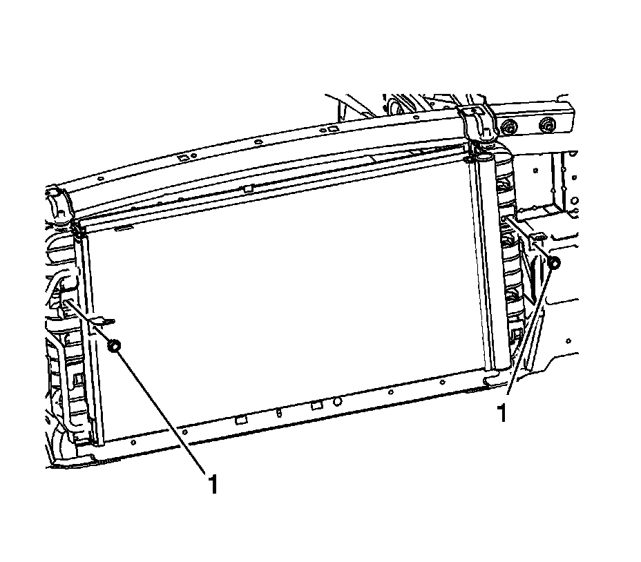 12. Remove the condenser from the radiator retainer (1).