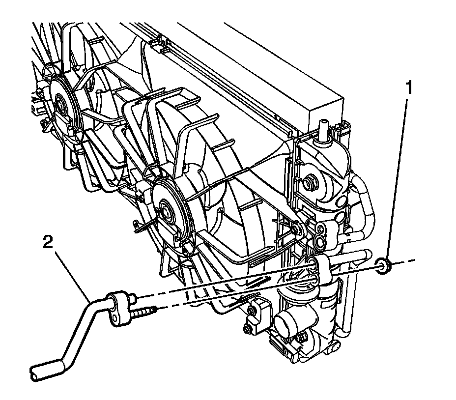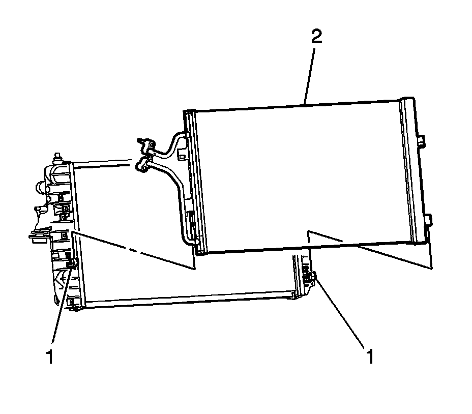 1. Install the condenser (2) into the radiator retainer (1).