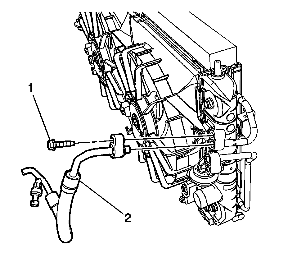 10. Remove the condenser lines to radiator mounting bolt (1).