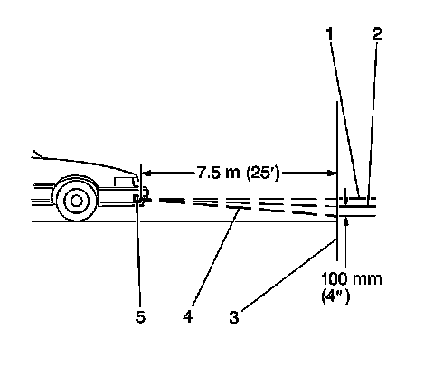* Using this measurement, mark the horizontal centerline of the fog lamp (1) on the target screen directly in front of the vehicle.