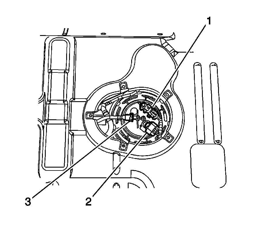 Note: When removing the module from the fuel tank, be aware that the module reservoir bucket is full of fuel. The module must be tipped slightly during removal to avoid bending the fuel level sensor float arm.