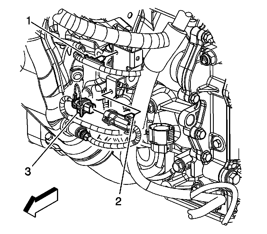 3. Connect the engine harness electrical connector (3) to the HO2S.