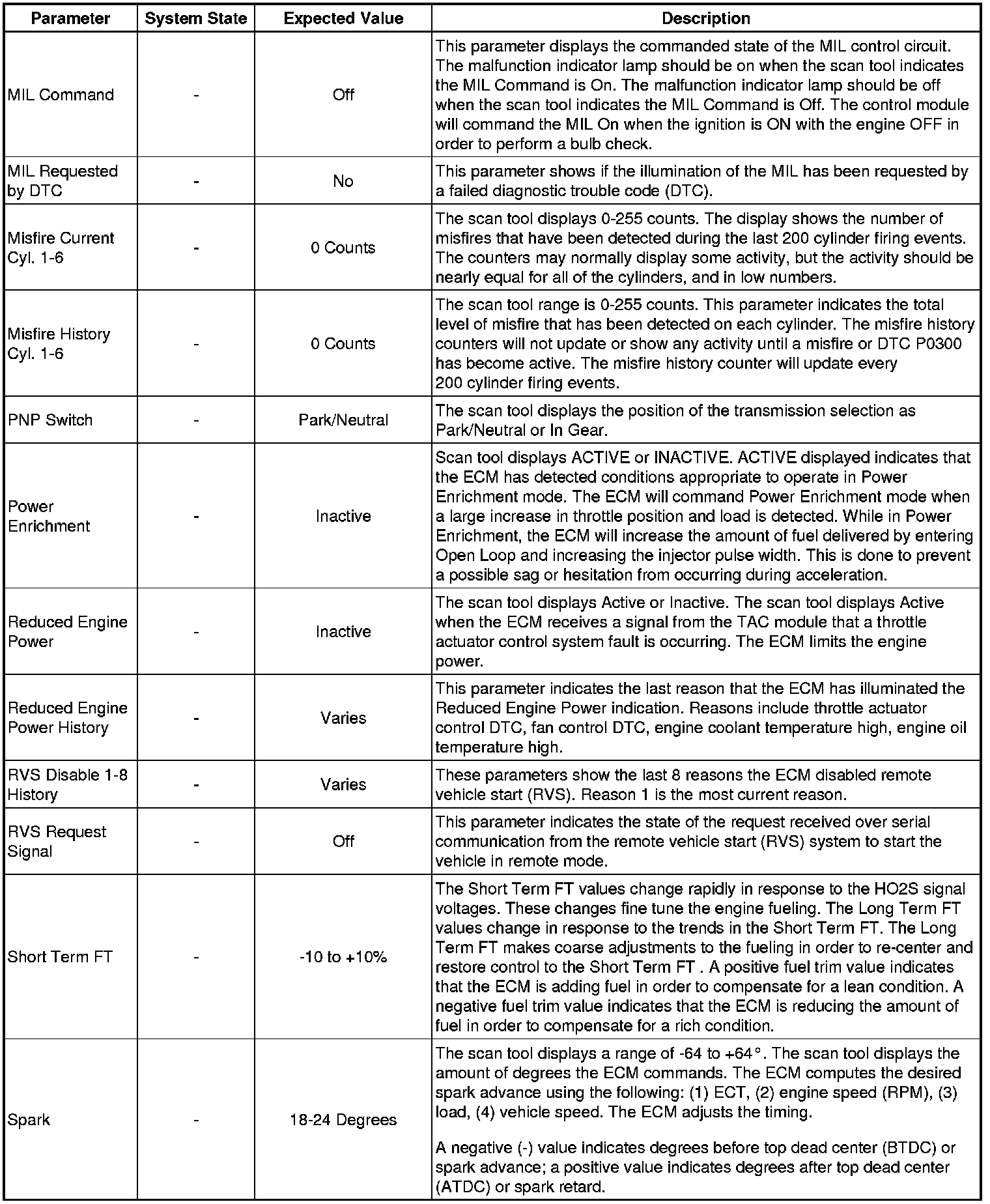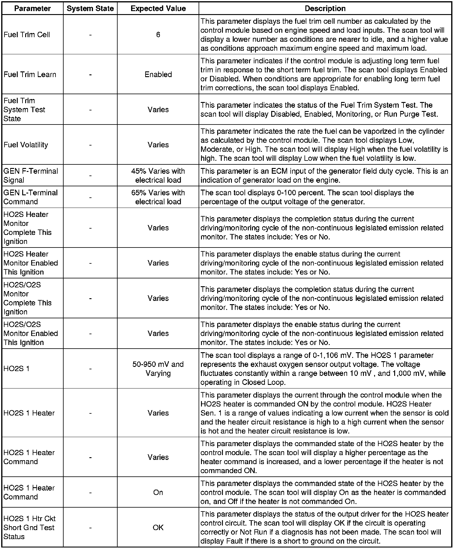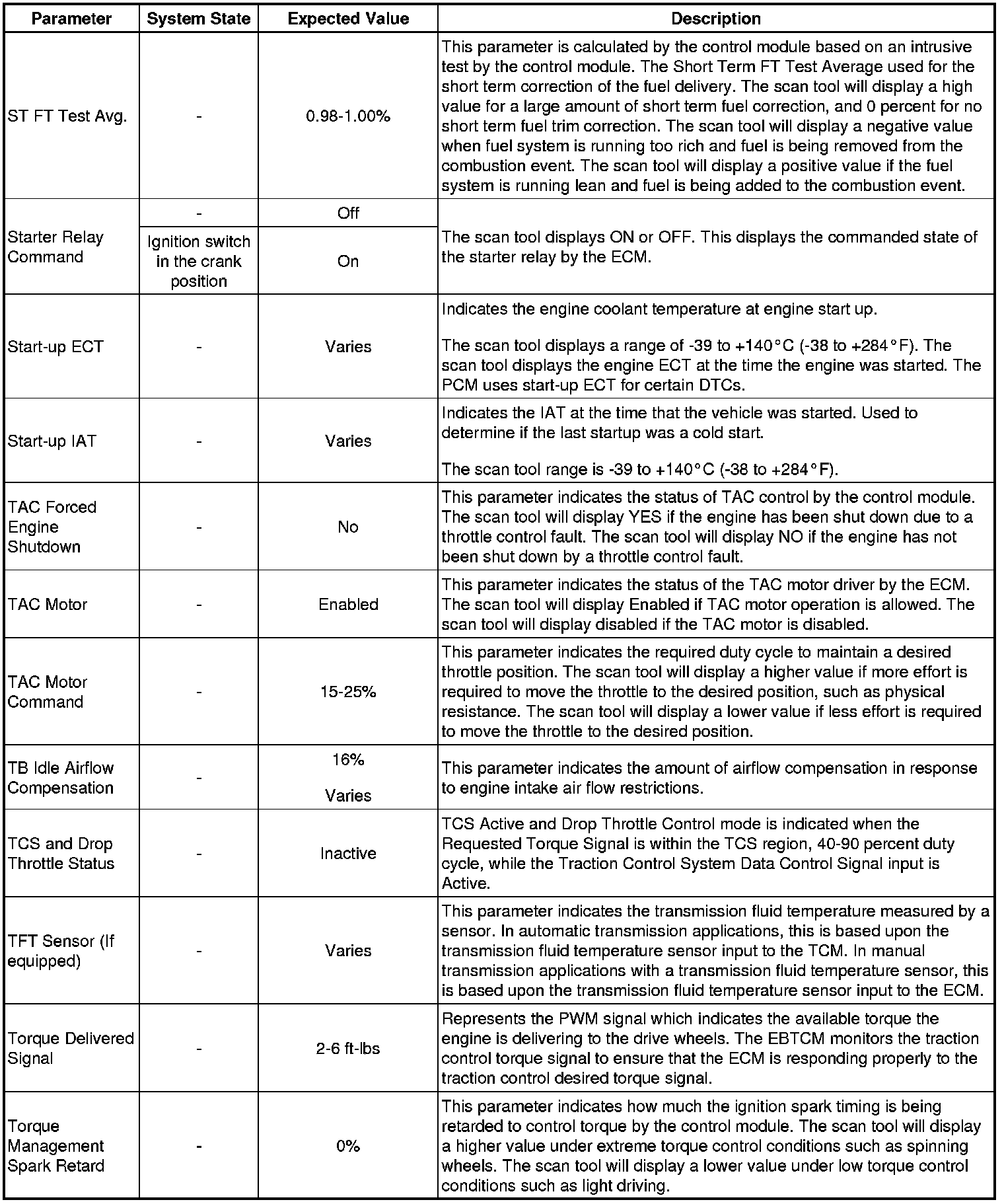 The Engine Scan Tool Data List represents values that would be seen on a normally running engine under the conditions listed below.