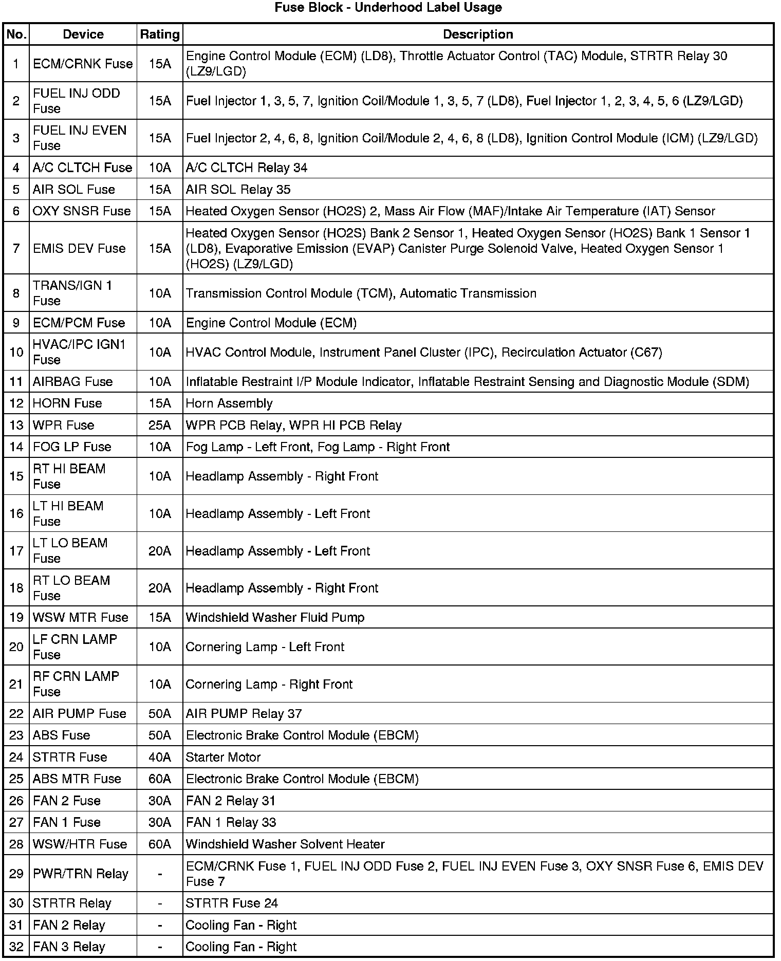 Fuse Block - Underhood Label