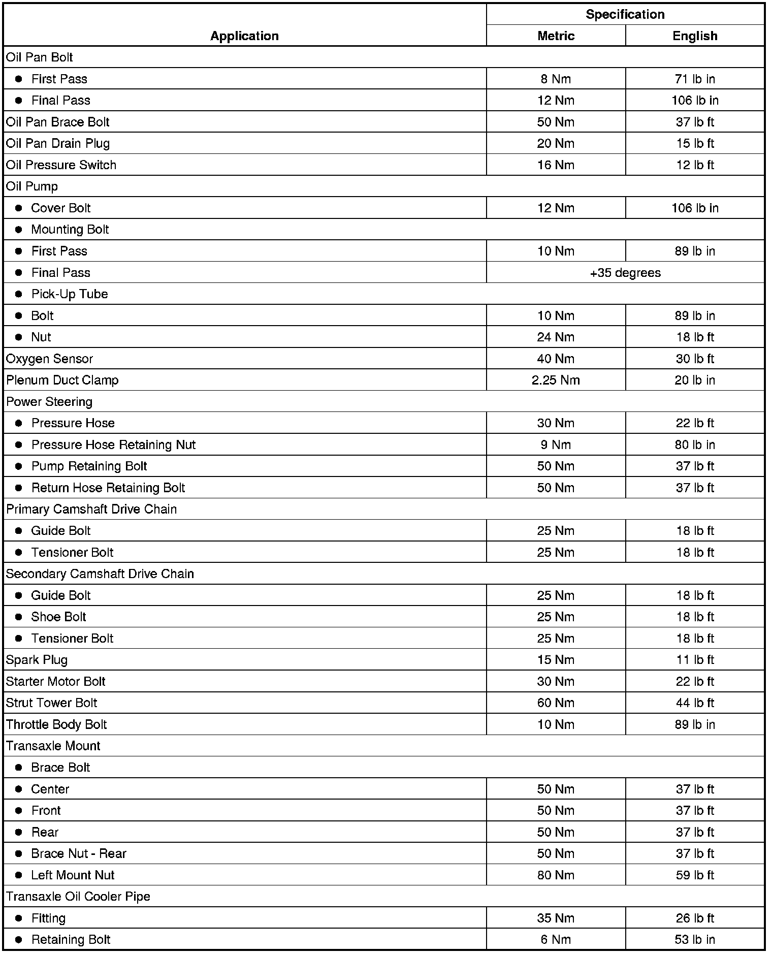 Fastener Tightening Specifications