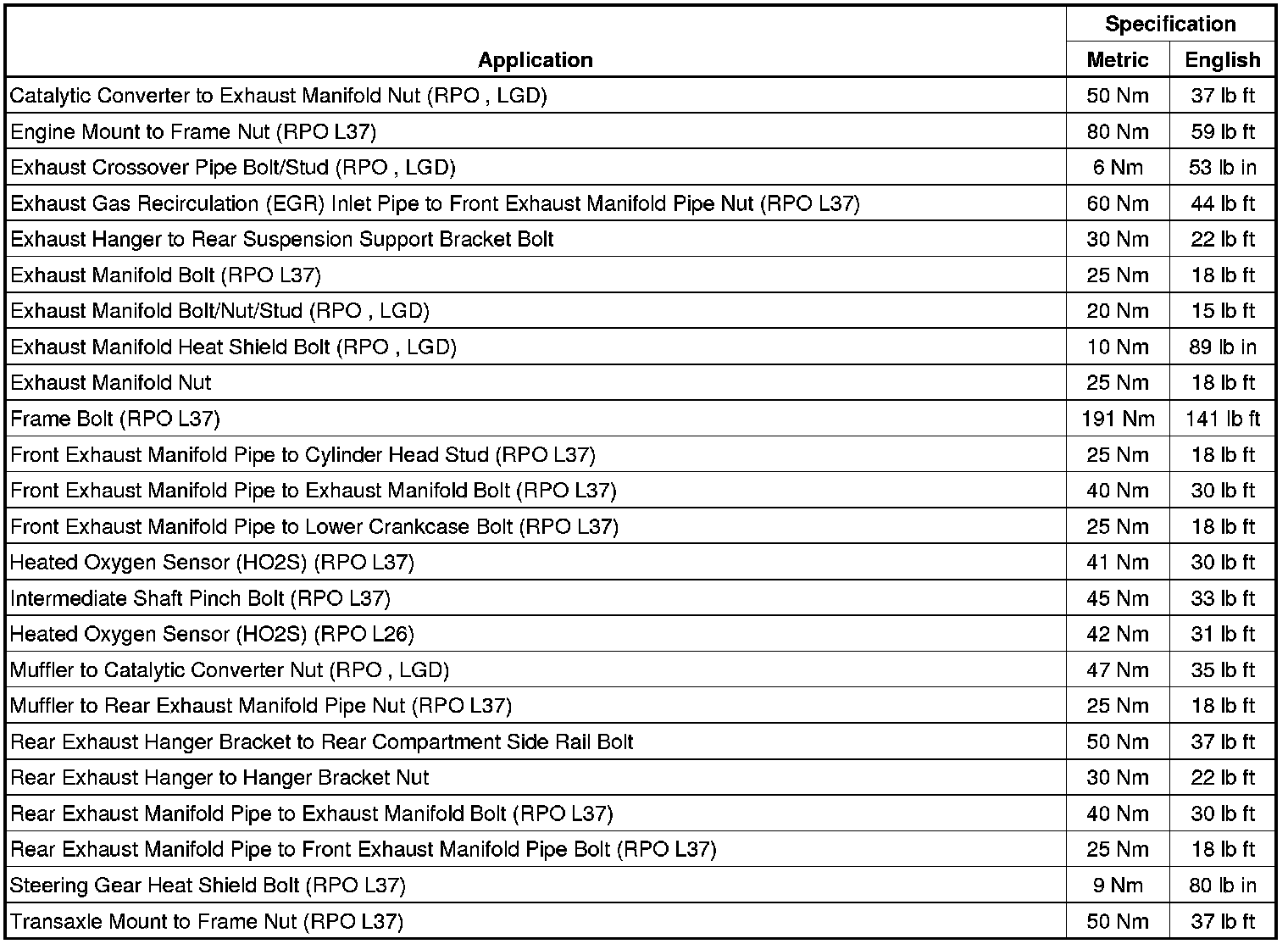 Fastener Tightening Specifications