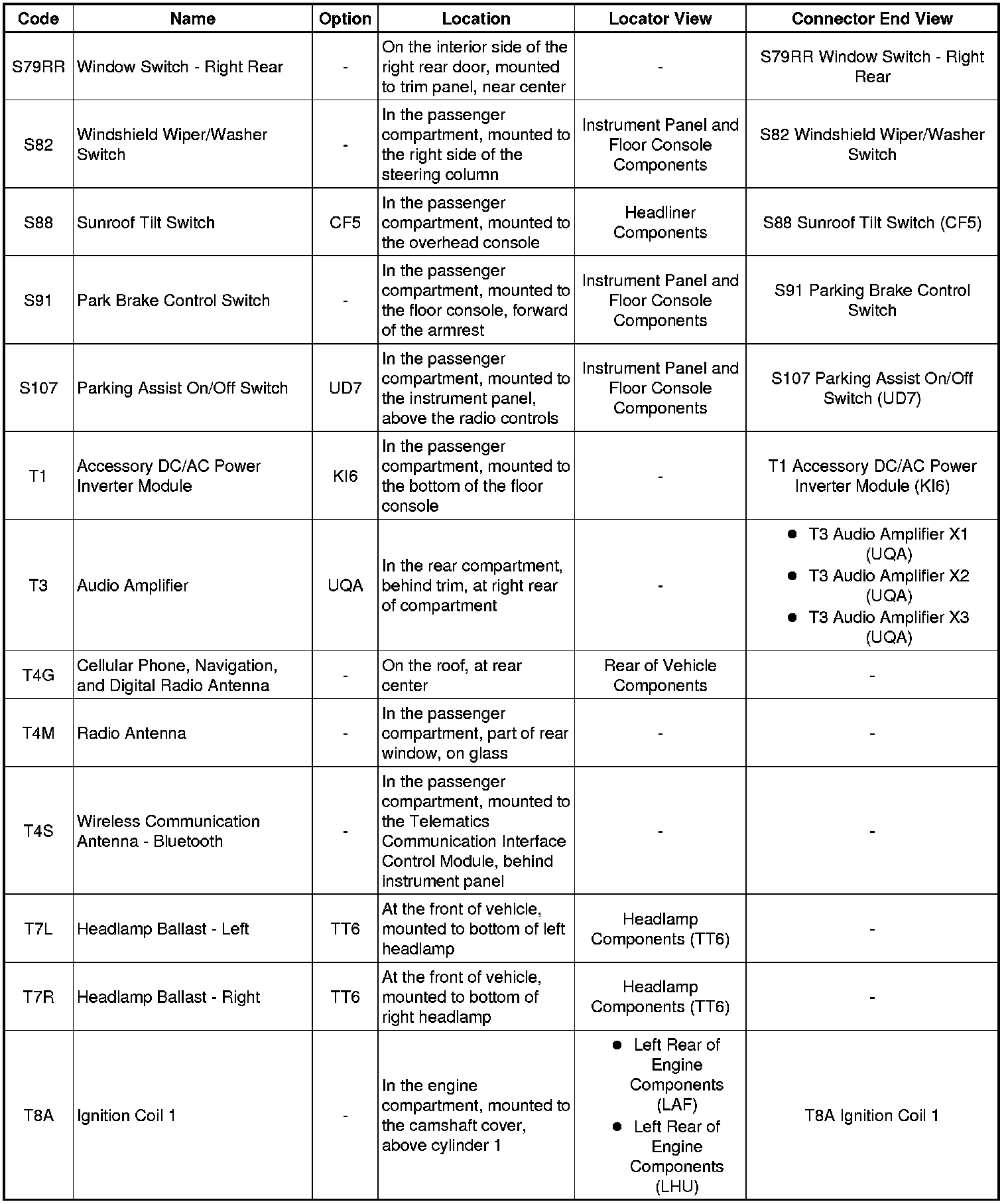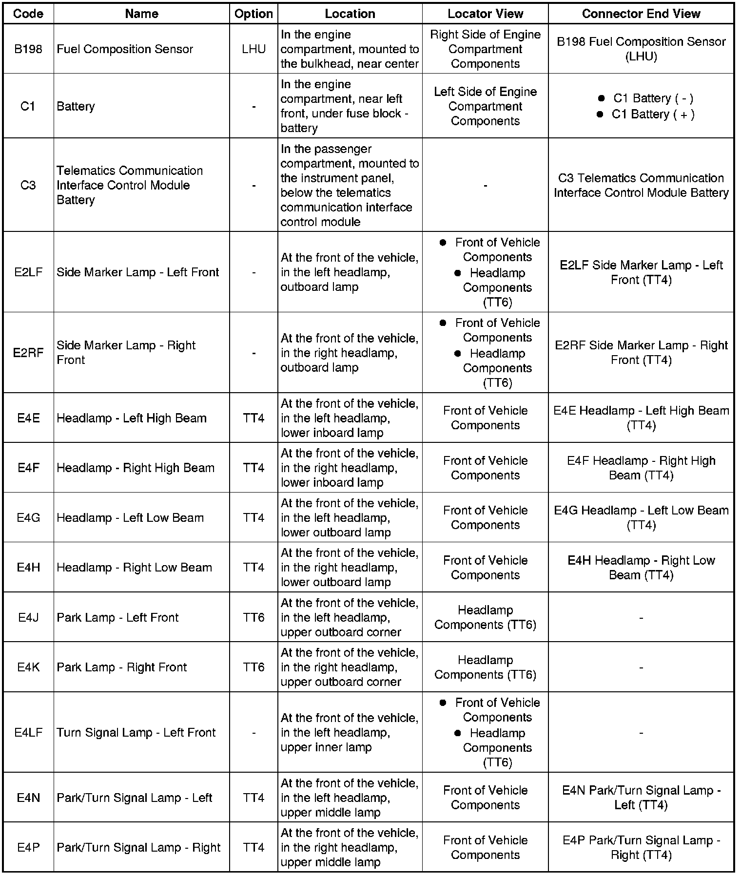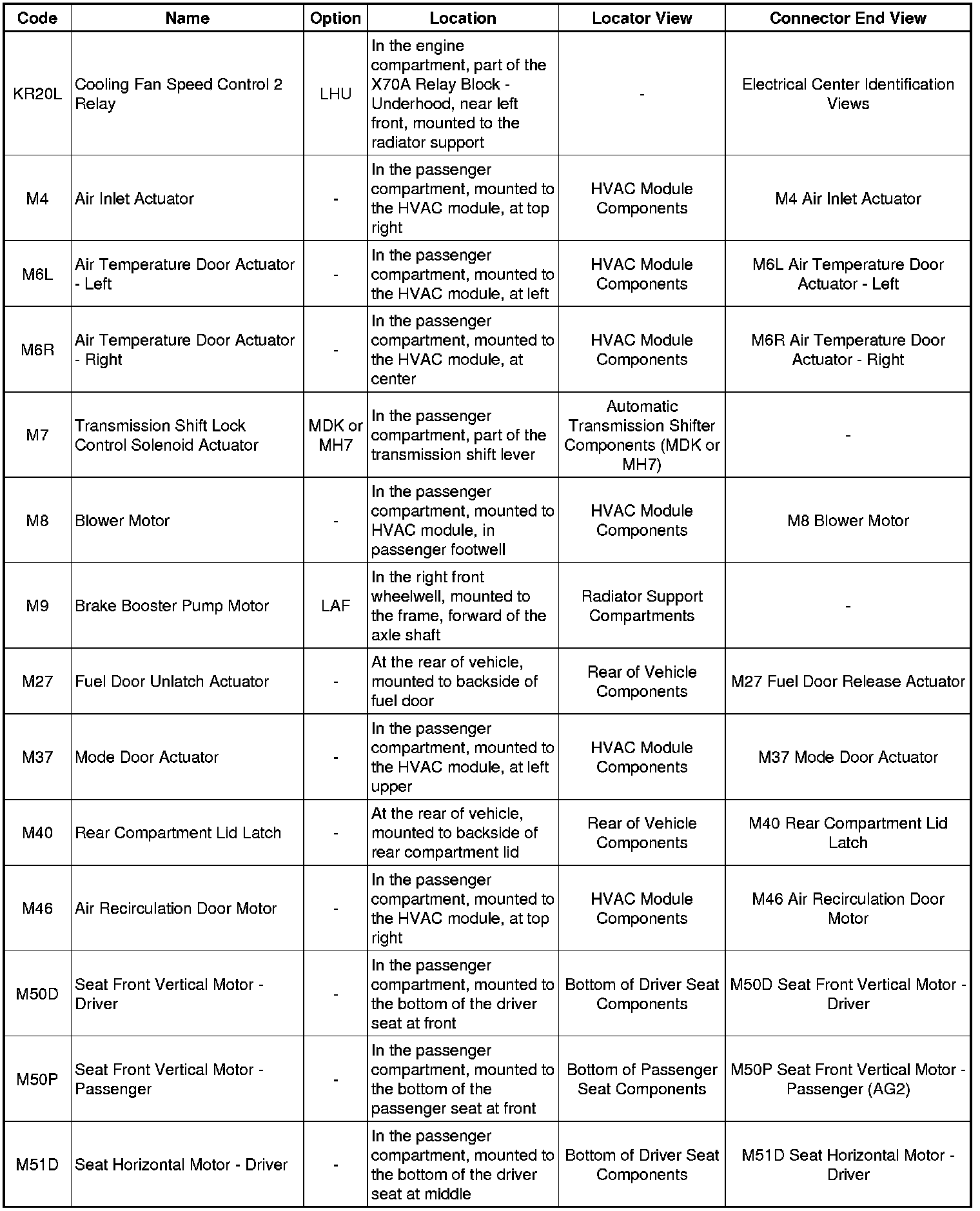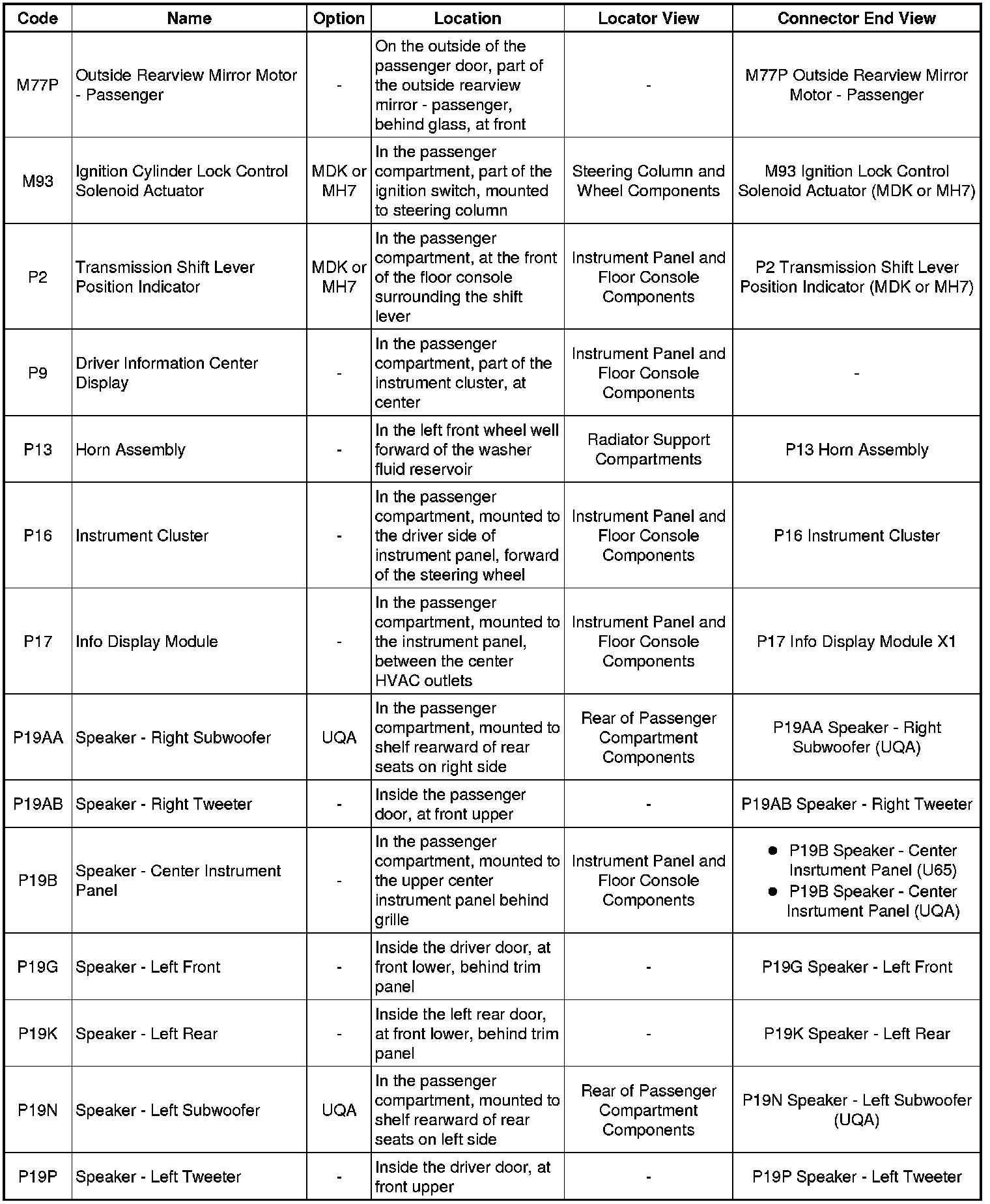 Master Electrical Component List