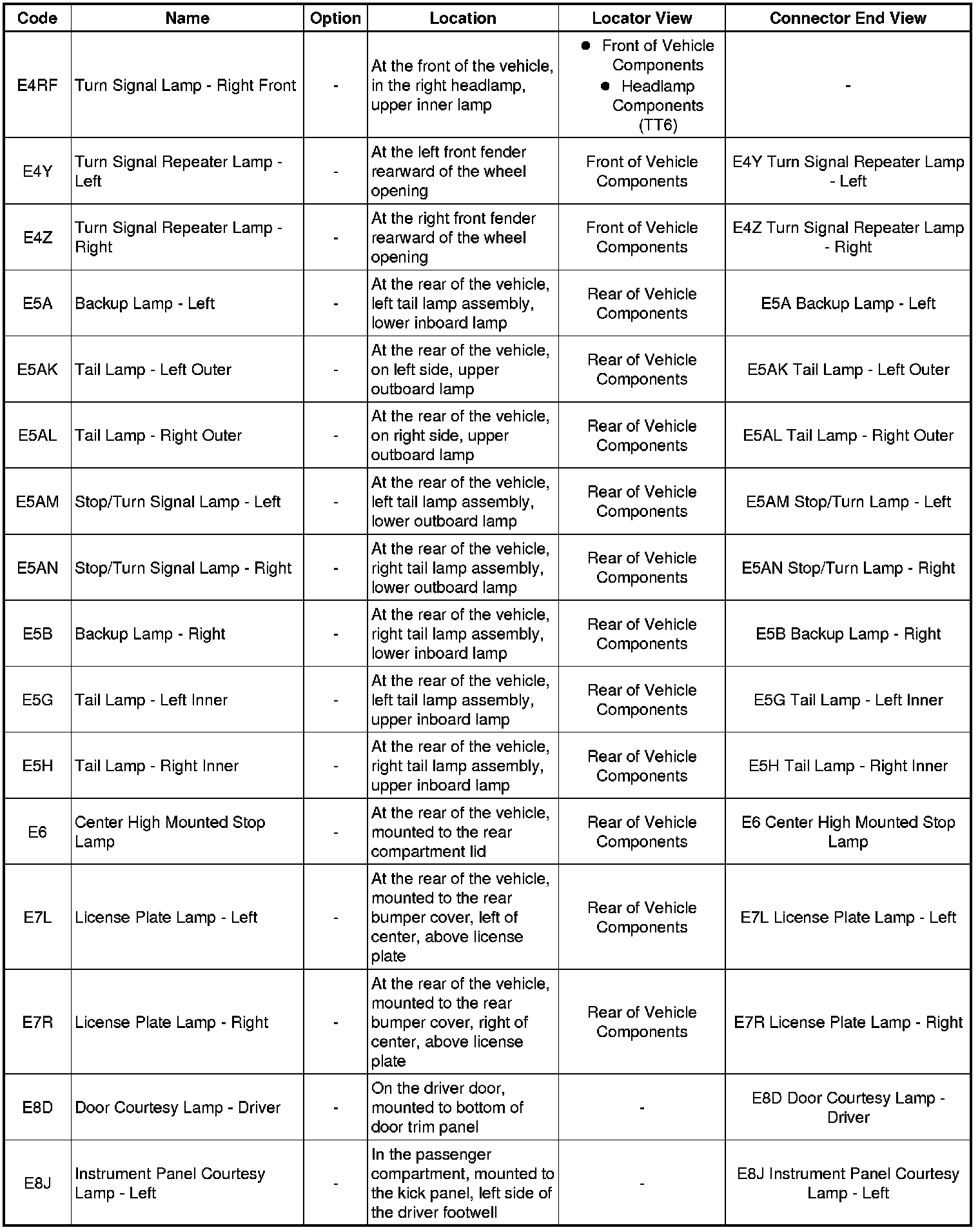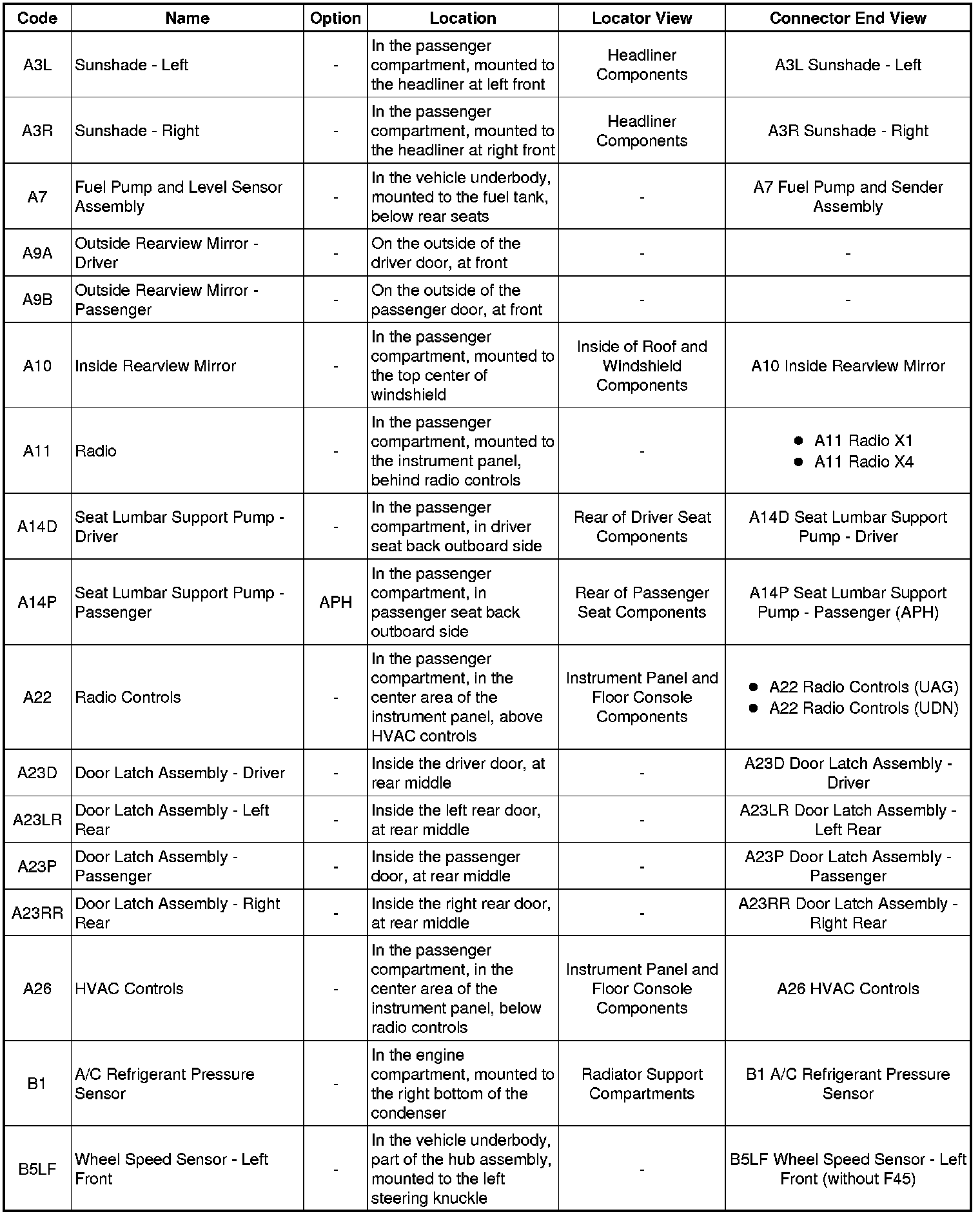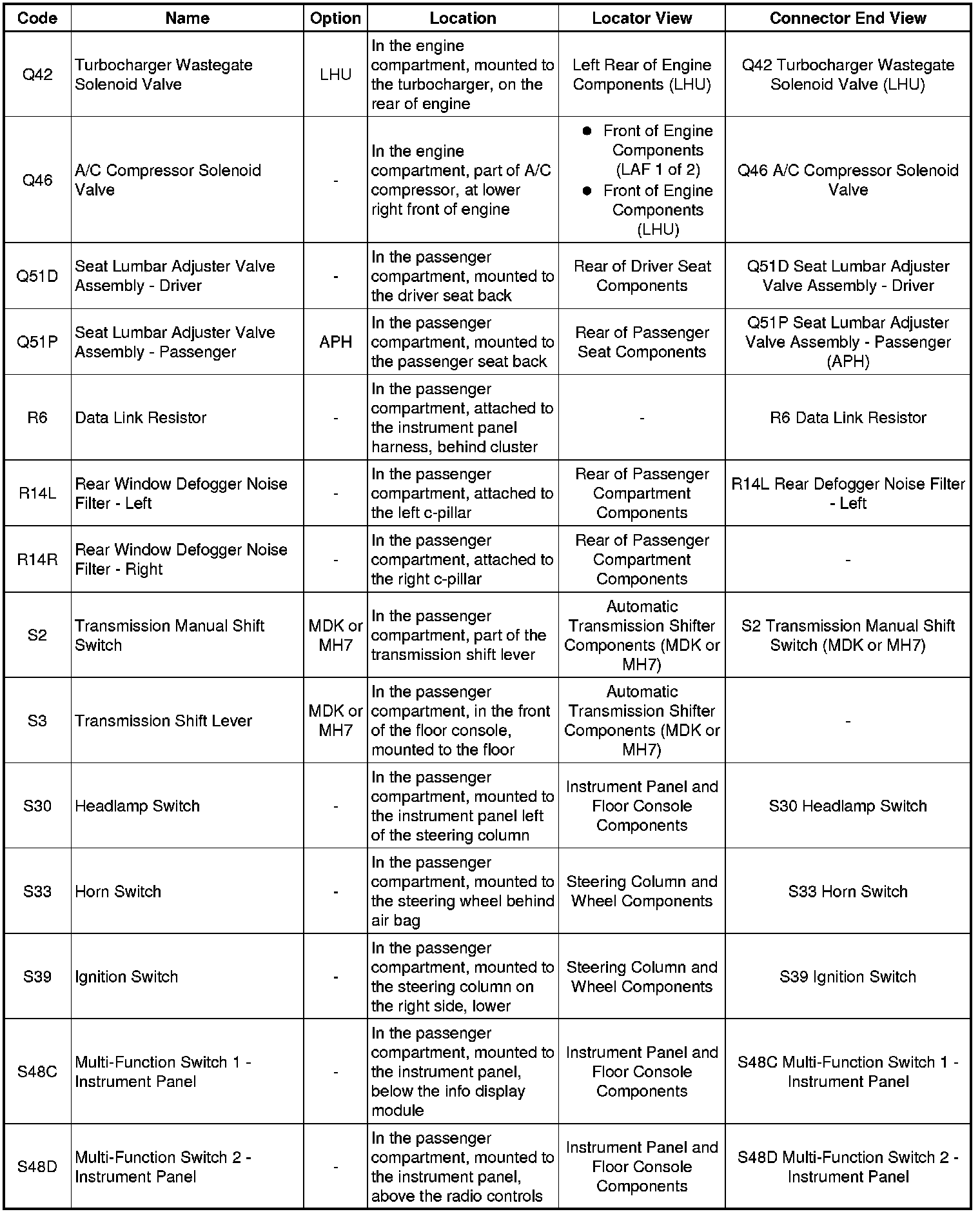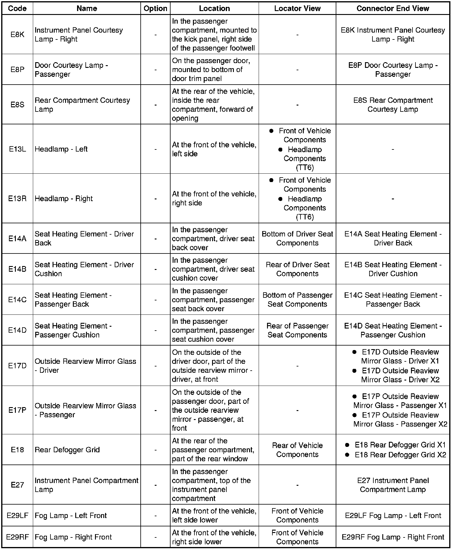 Master Electrical Component List