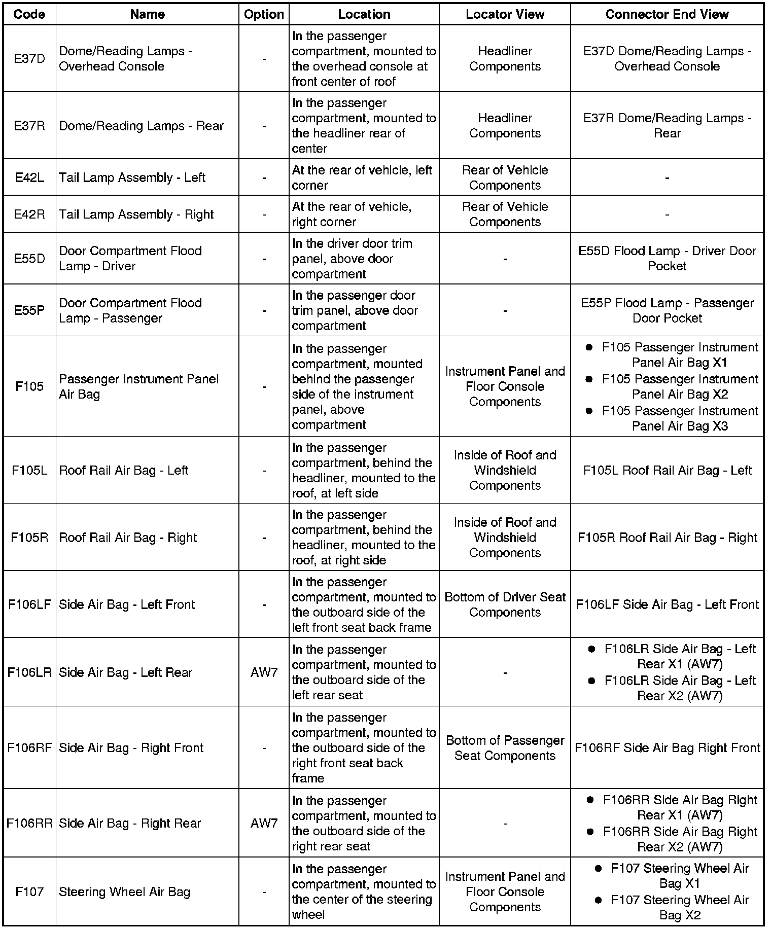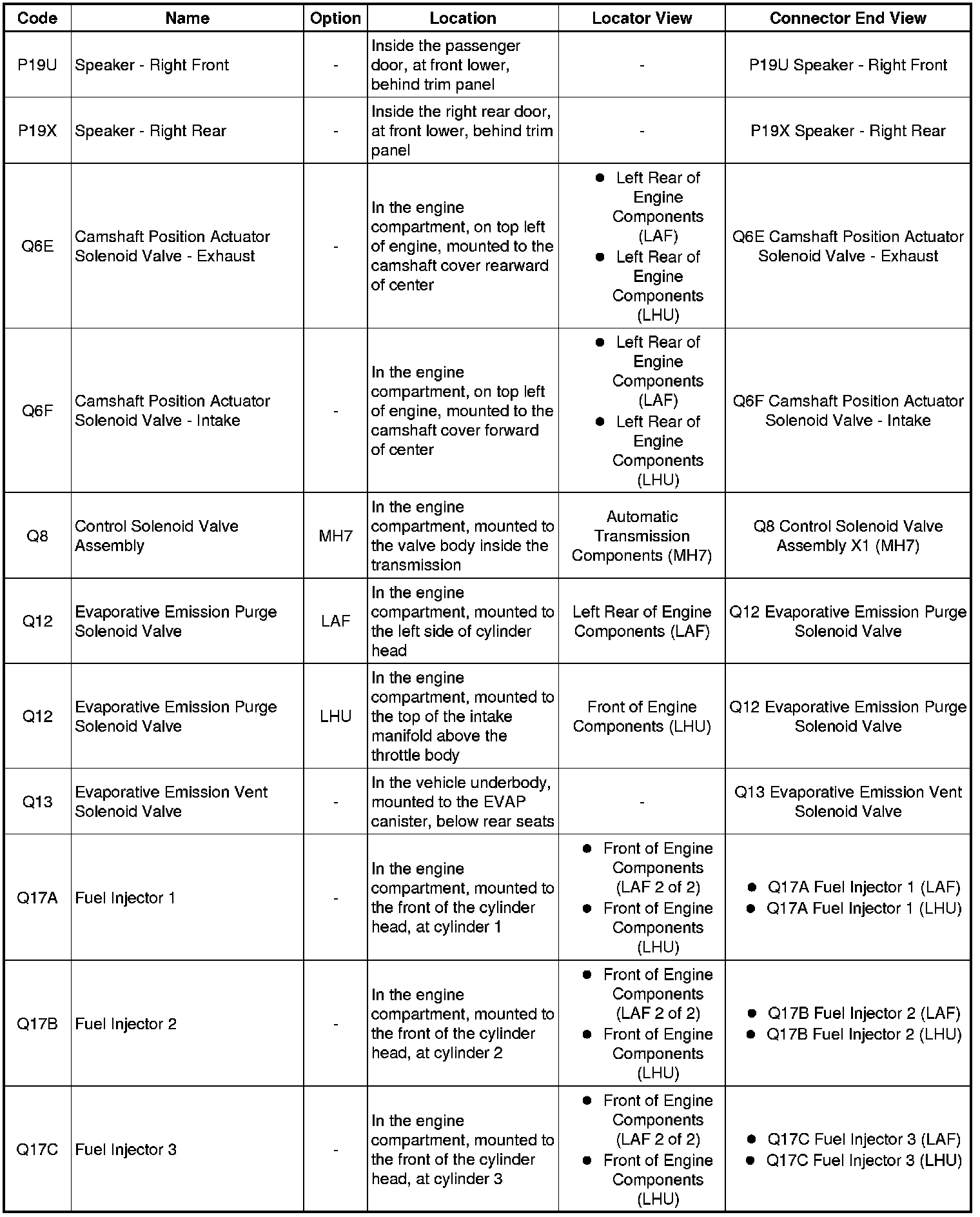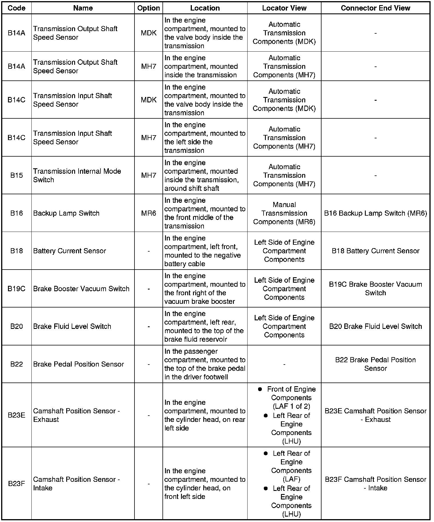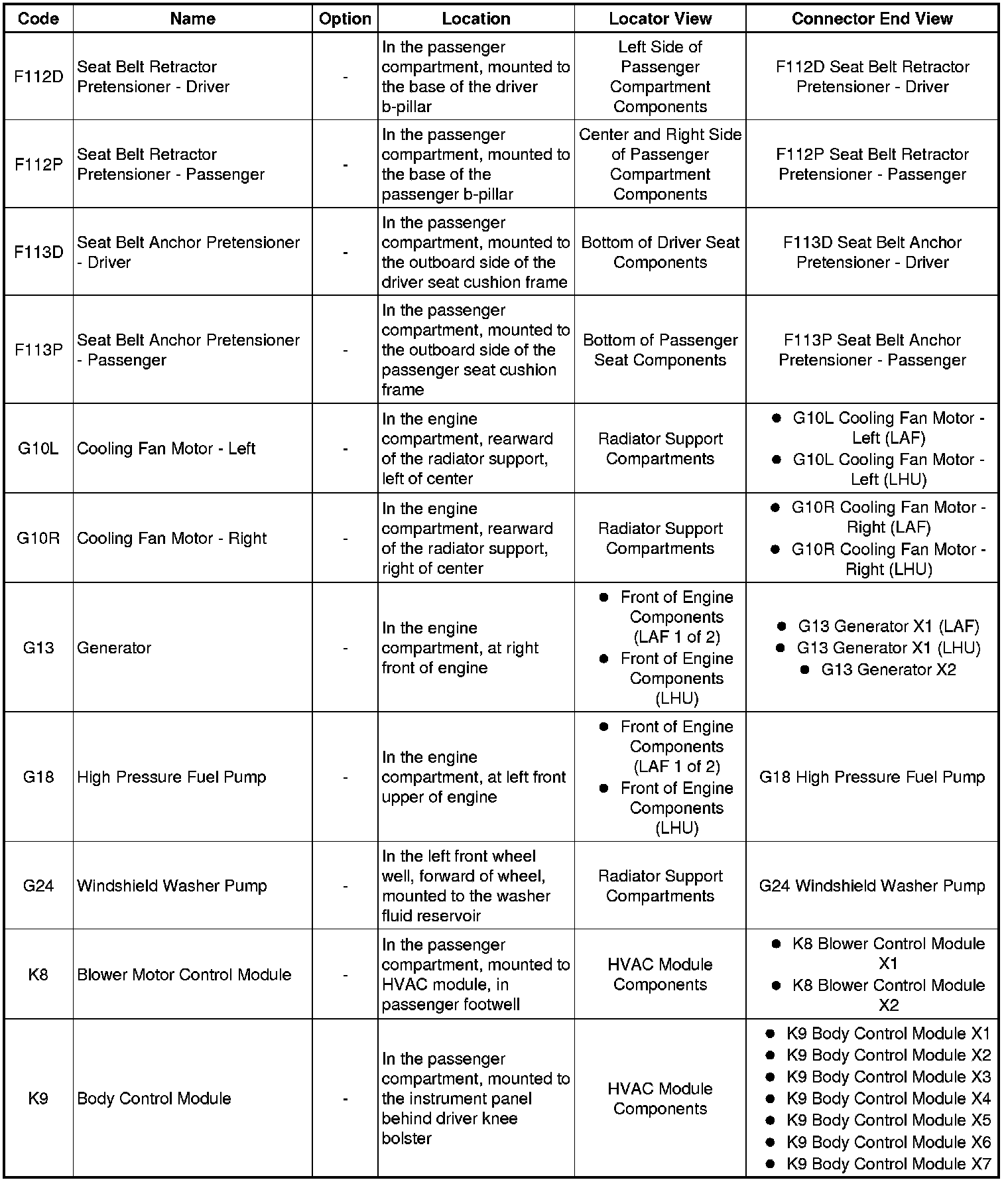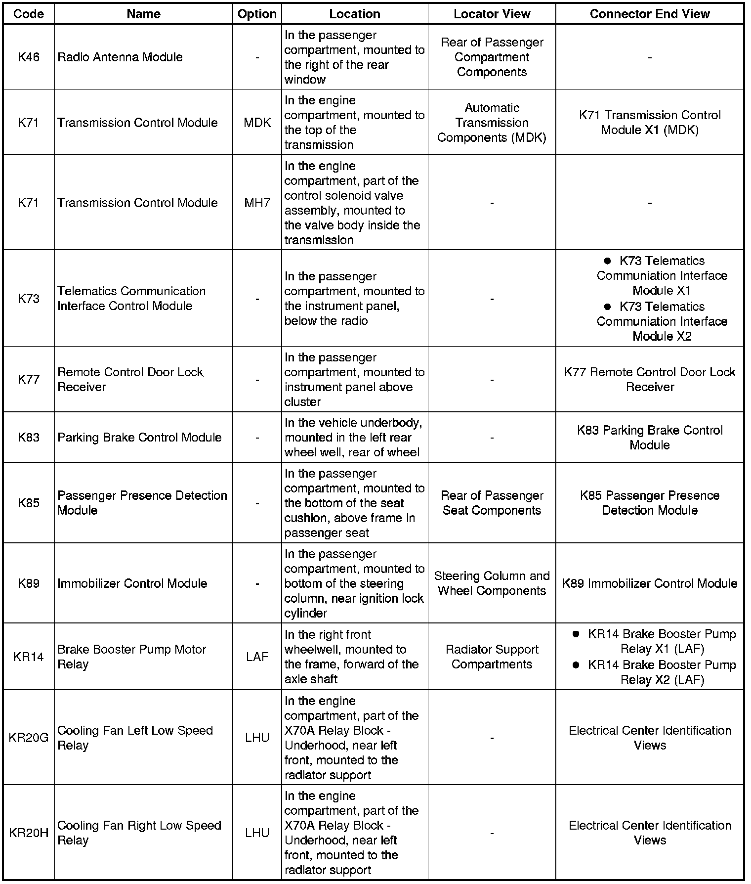 Master Electrical Component List