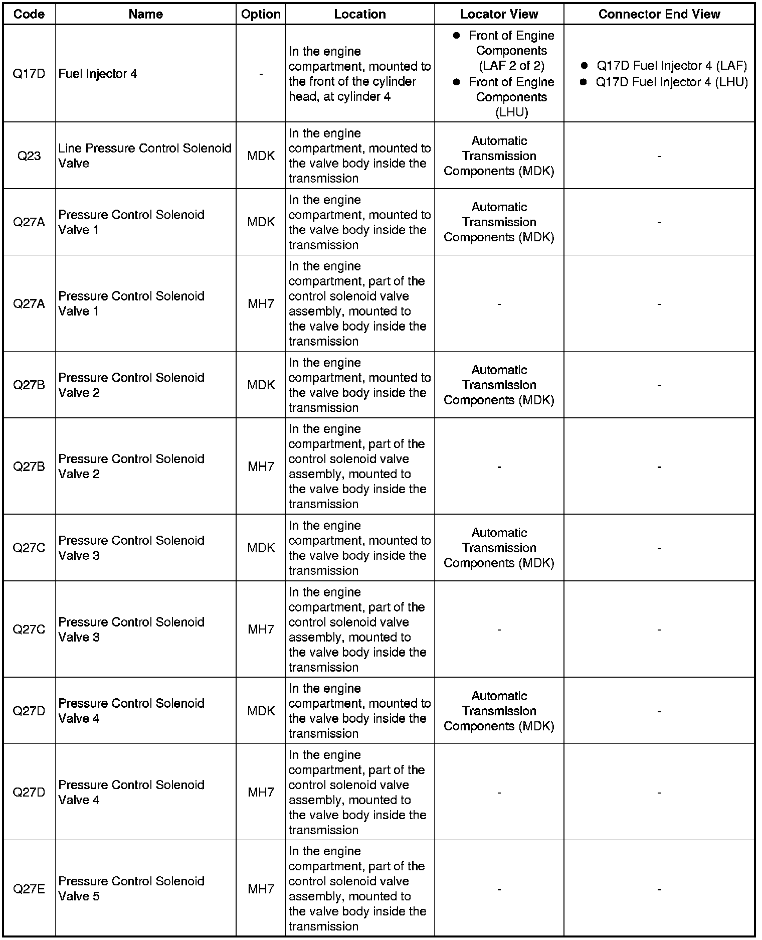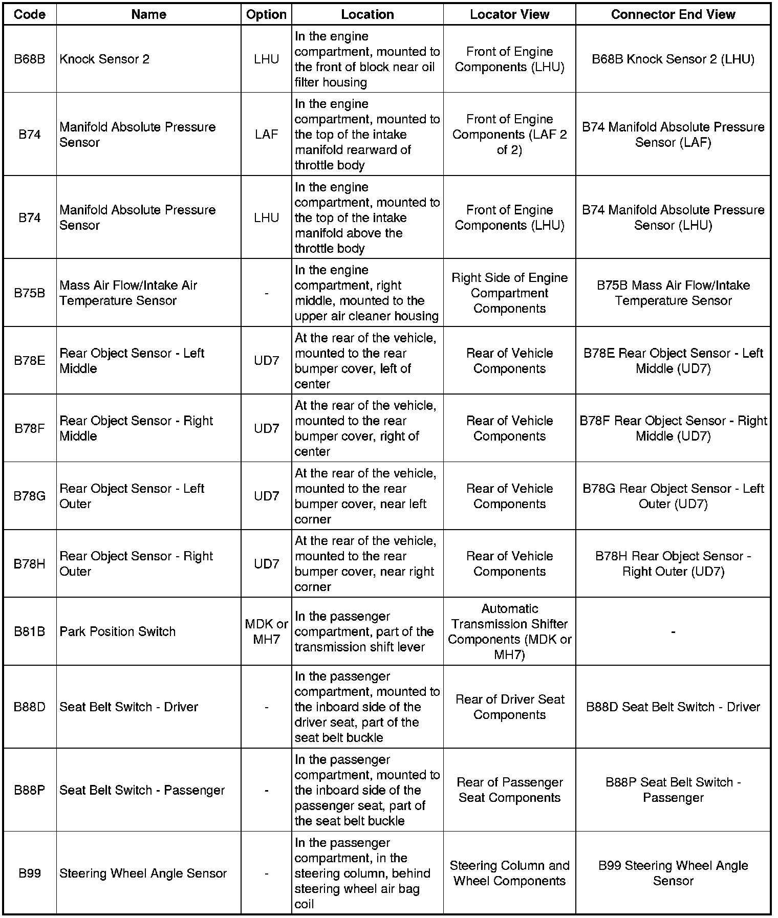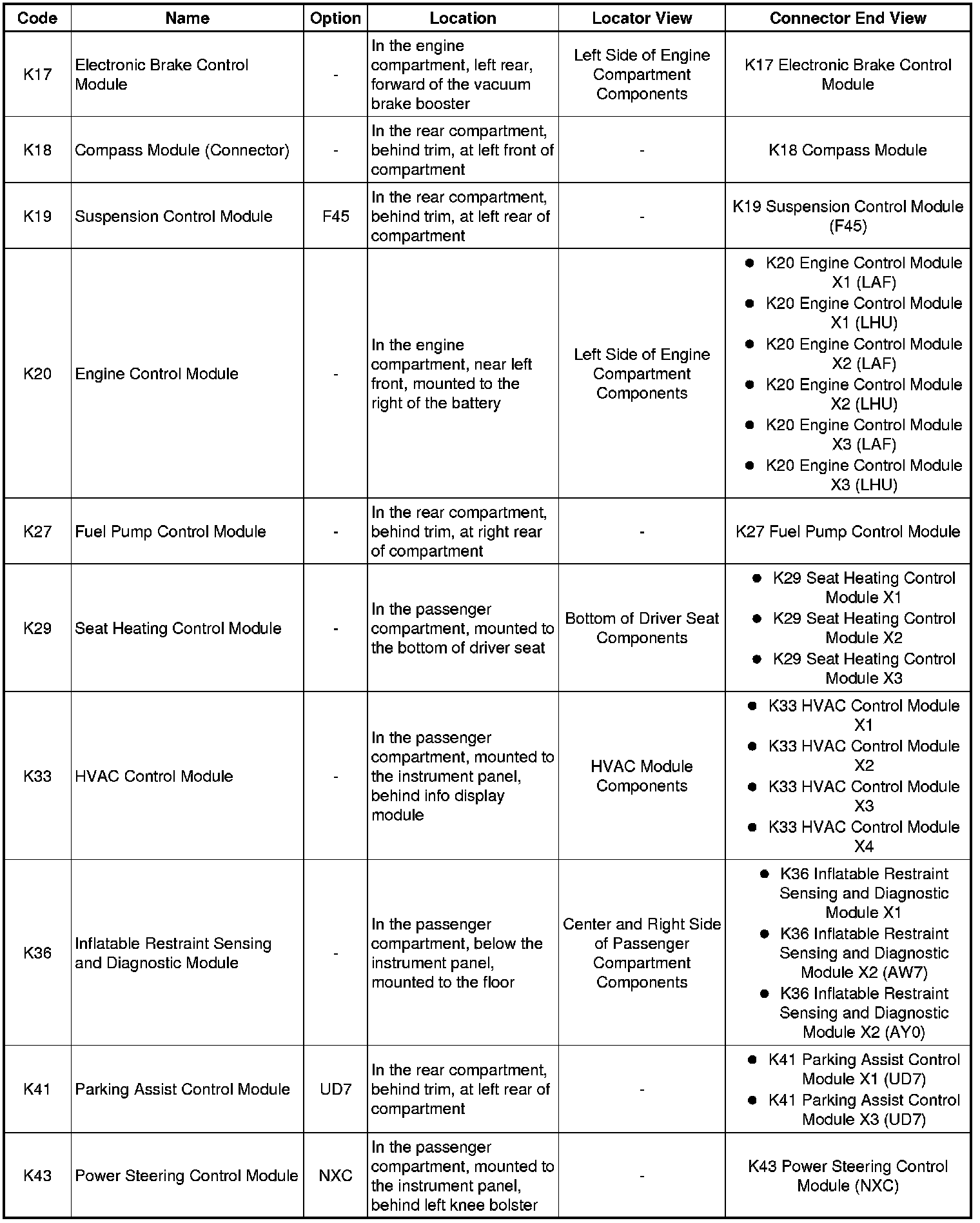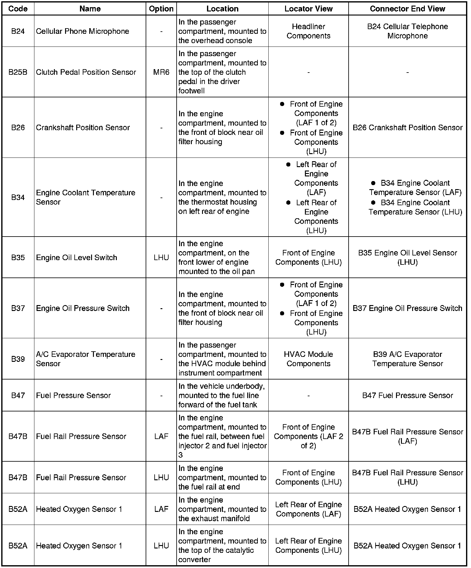 Master Electrical Component List