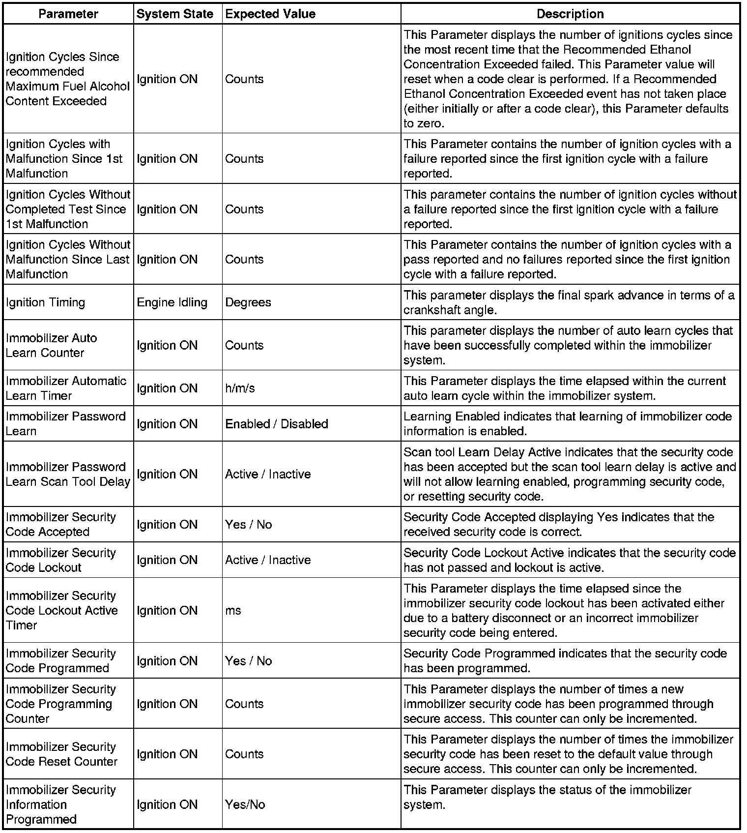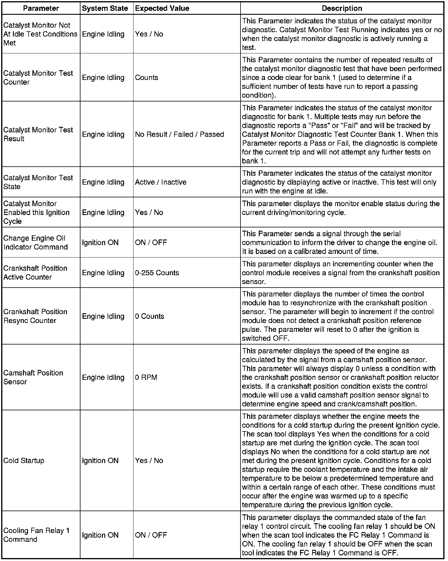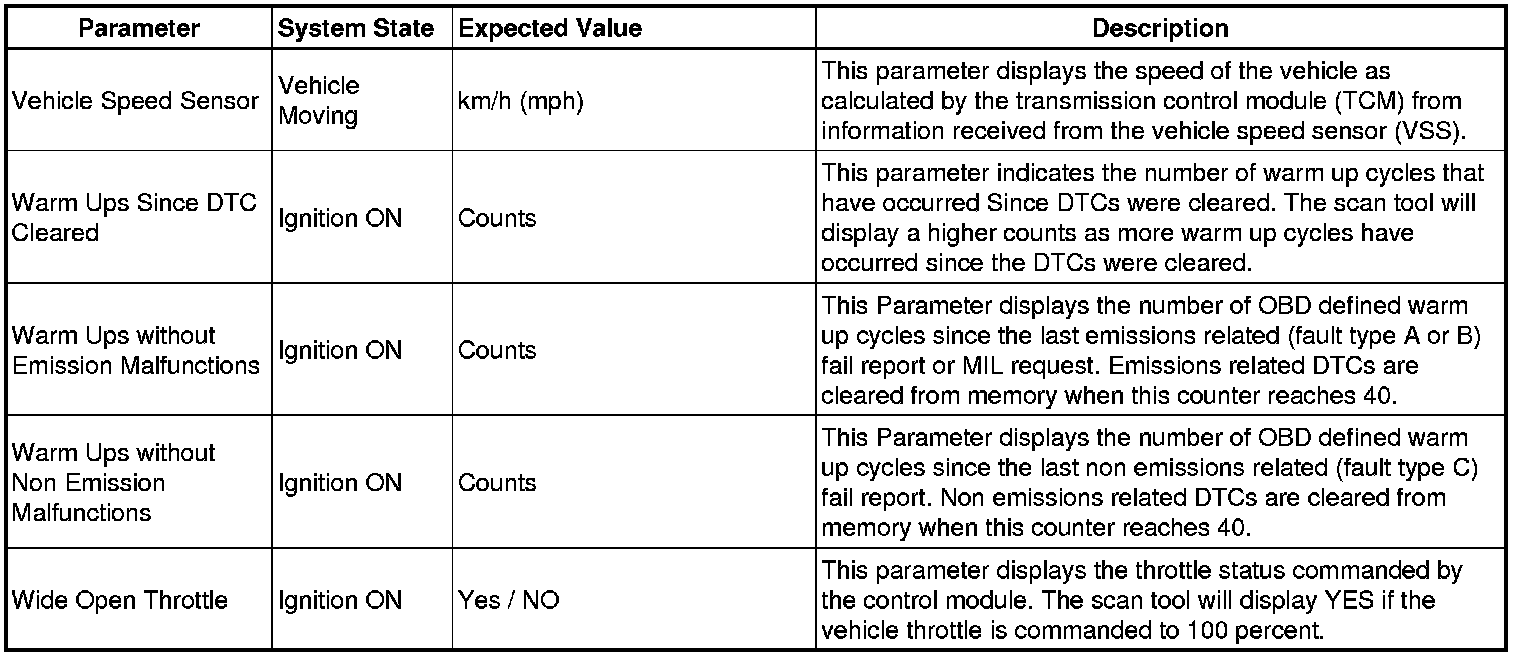 Only the parameters listed below are referenced in this service manual for use in diagnosis.
