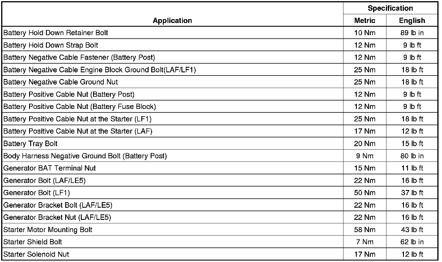 Fastener Tightening Specifications
