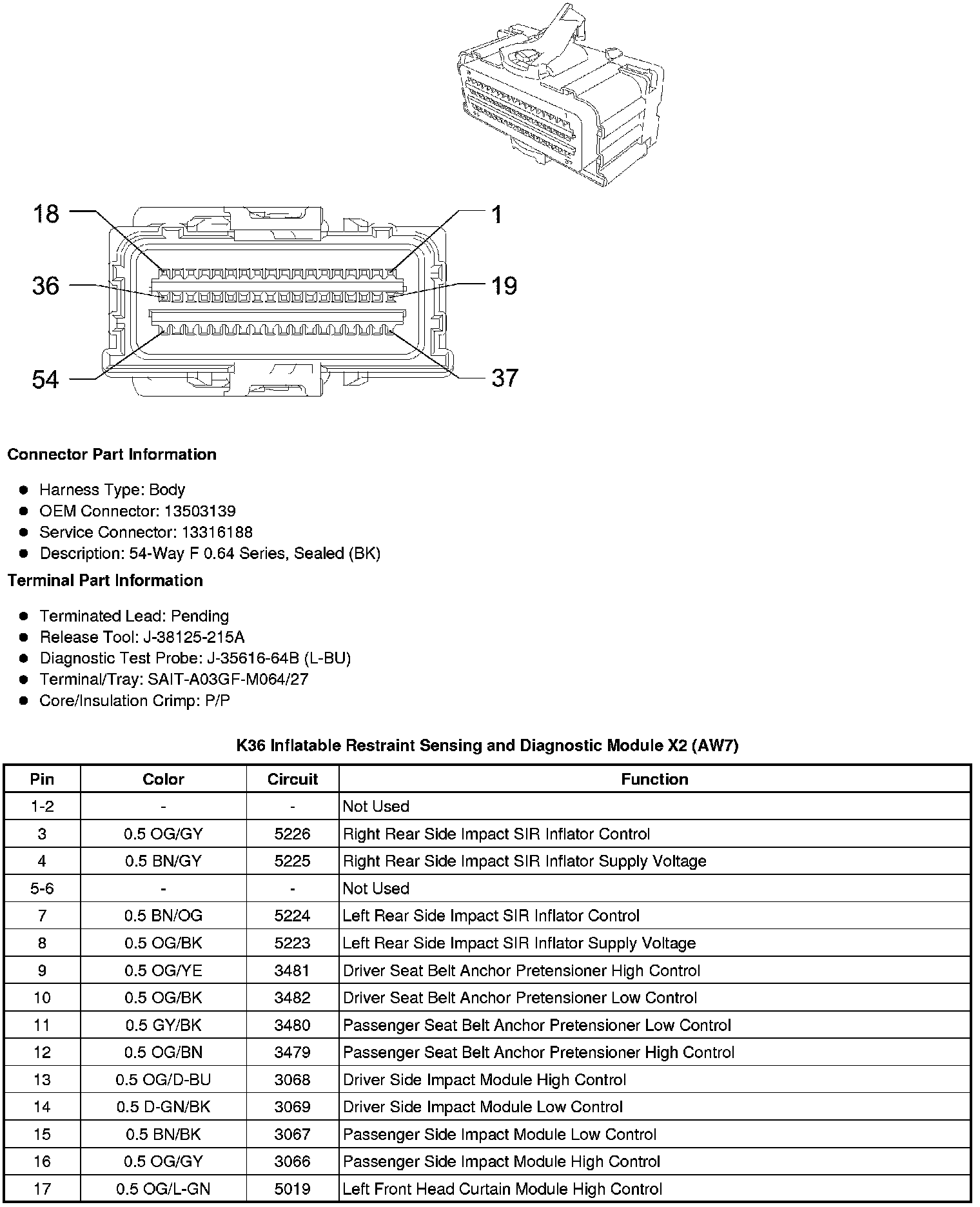 K36 Inflatable Restraint Sensing and Diagnostic Module X2 (AW7)