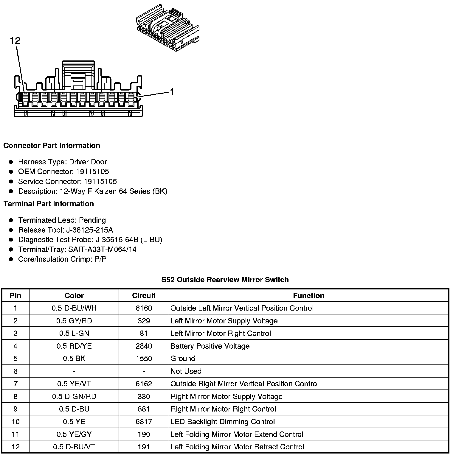 S52 Outside Rearview Mirror Switch