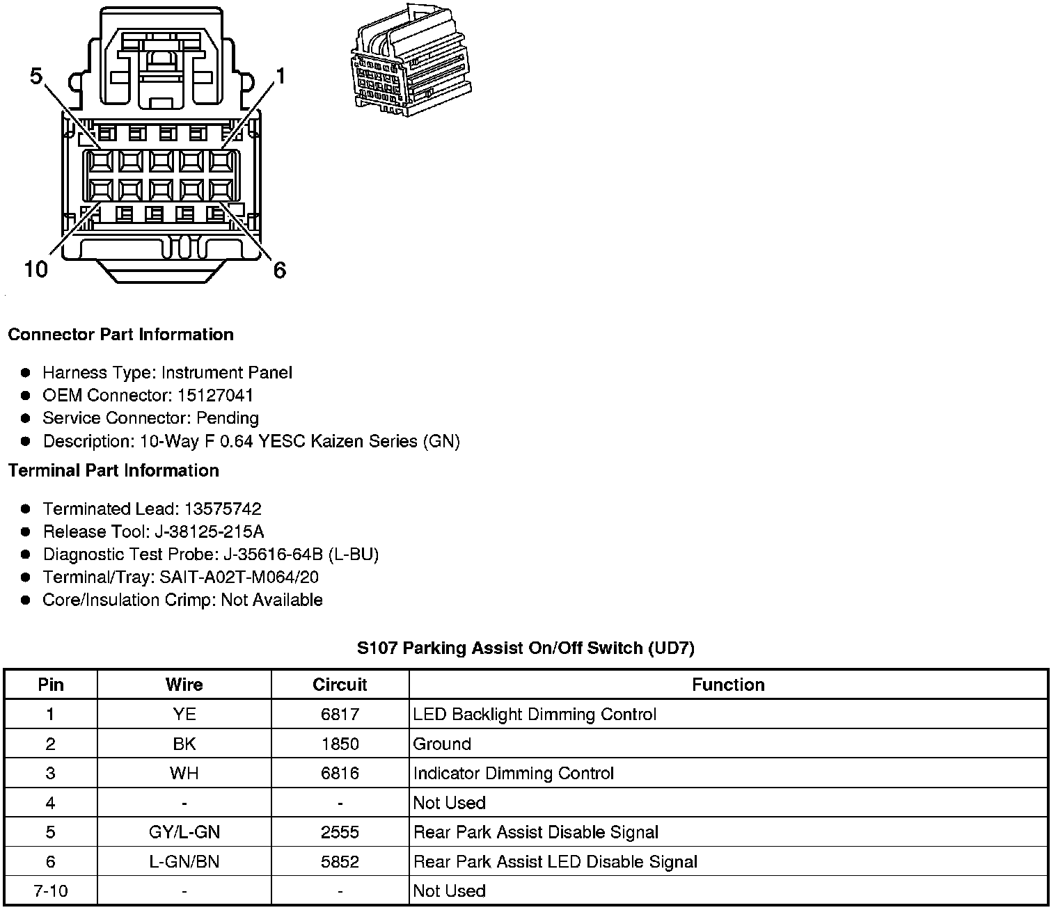 S107 Parking Assist On/Off Switch (UD7)
