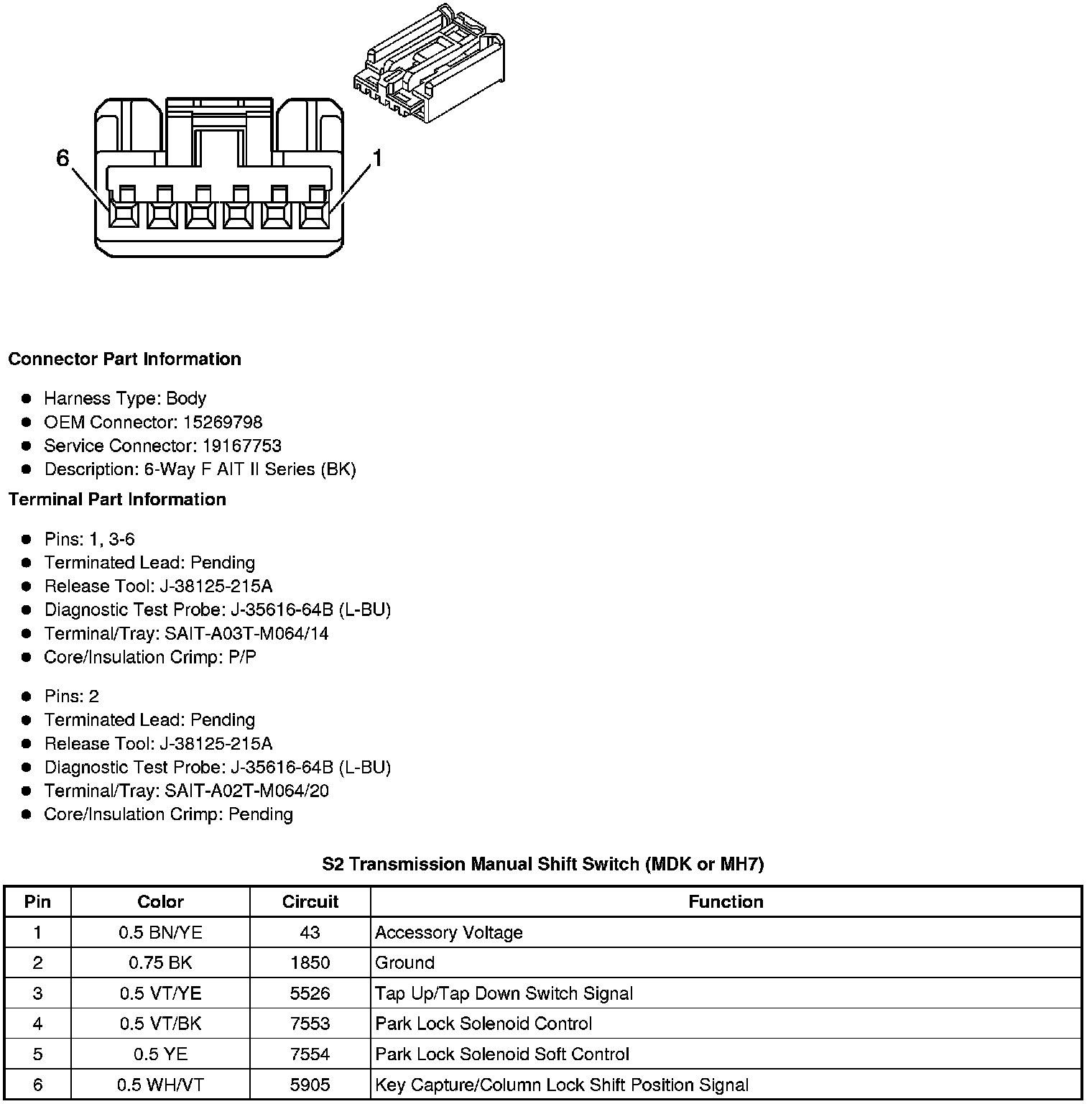 S2 Transmission Manual Shift Switch (MDK or MH7)