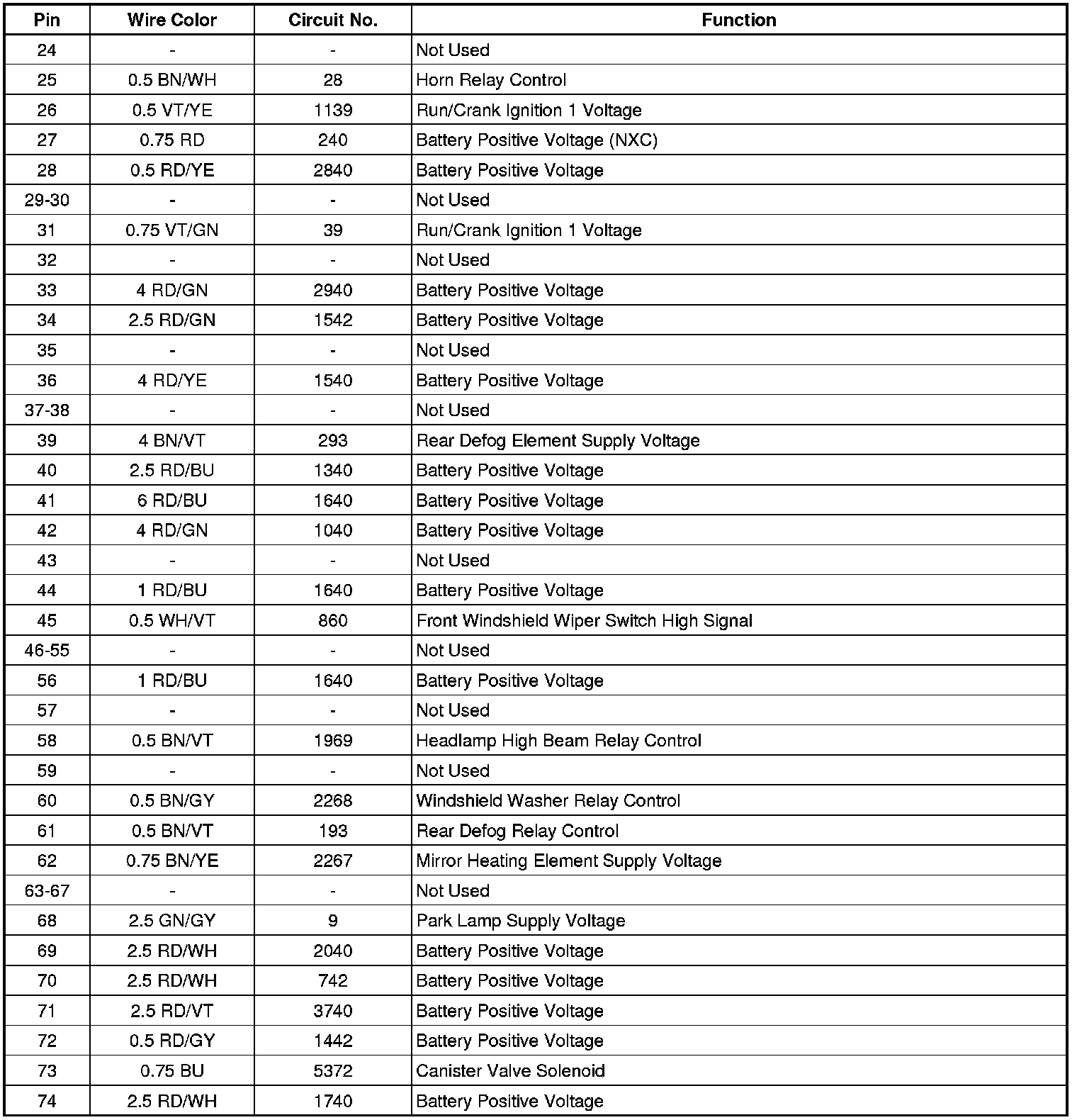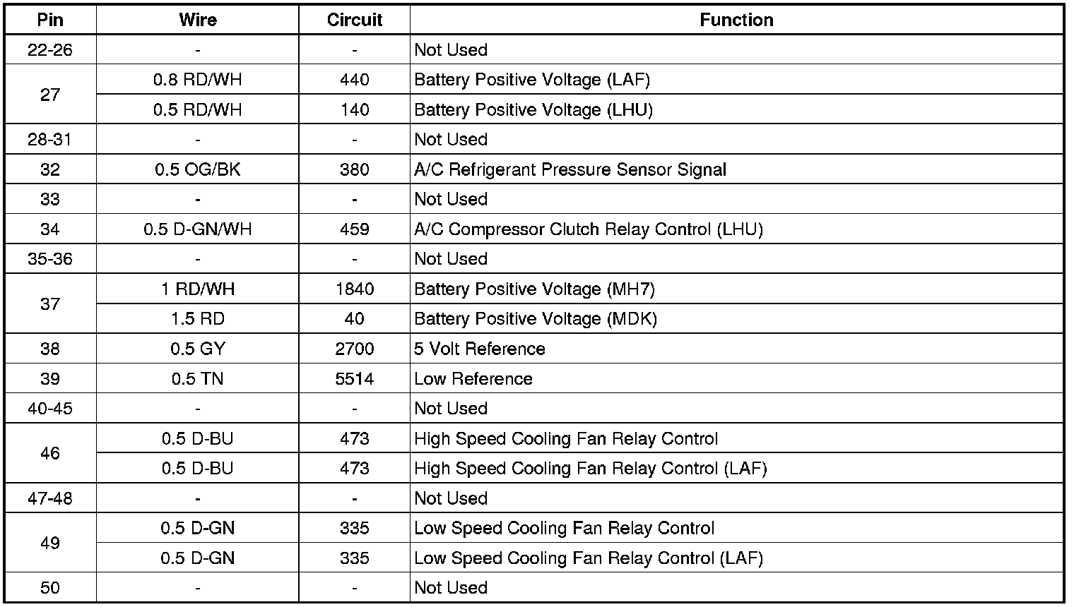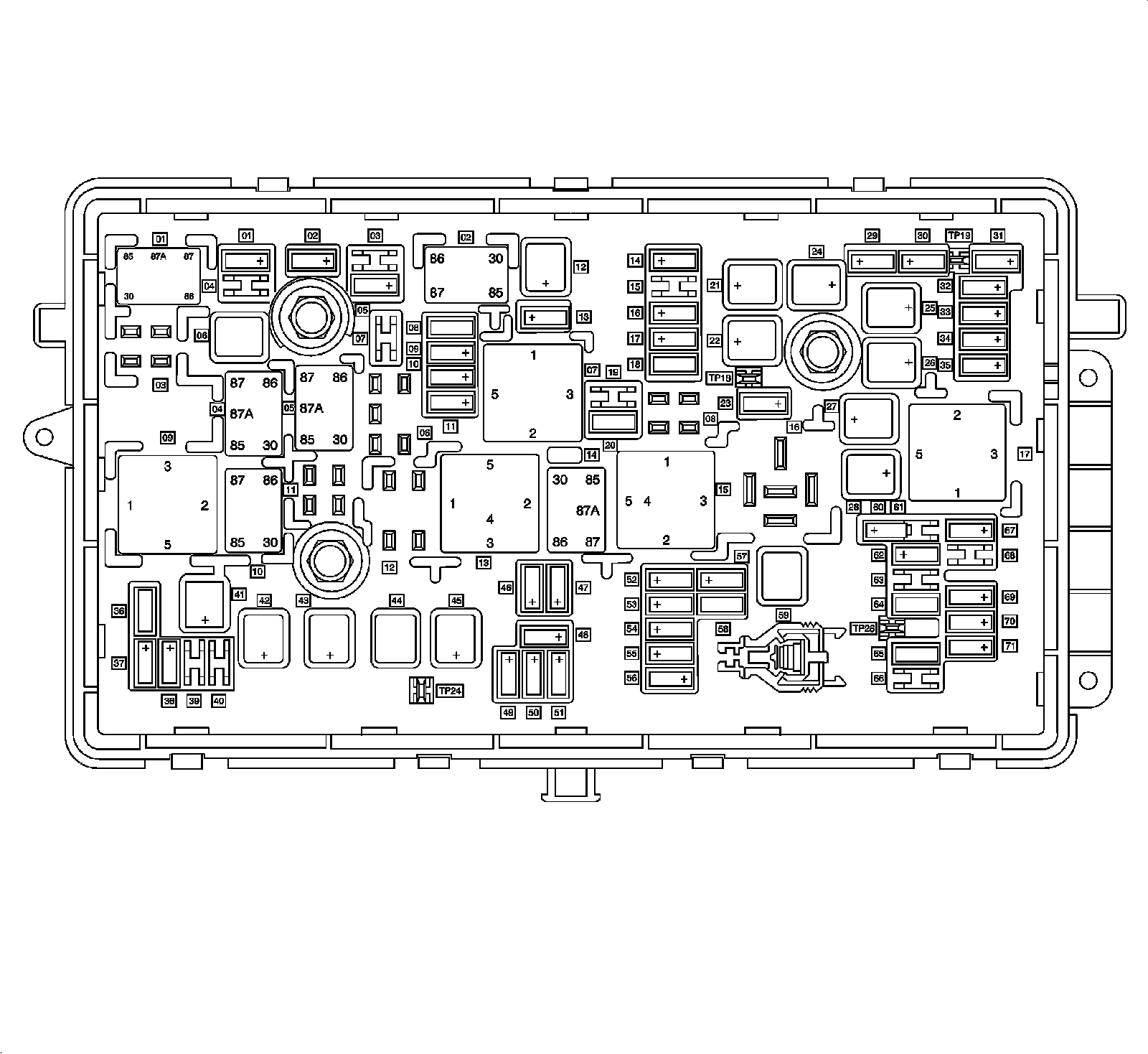 X50A Fuse Block - Underhood - Bottom View