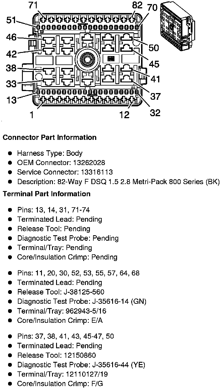 X50A Fuse Block - Underhood - Top View