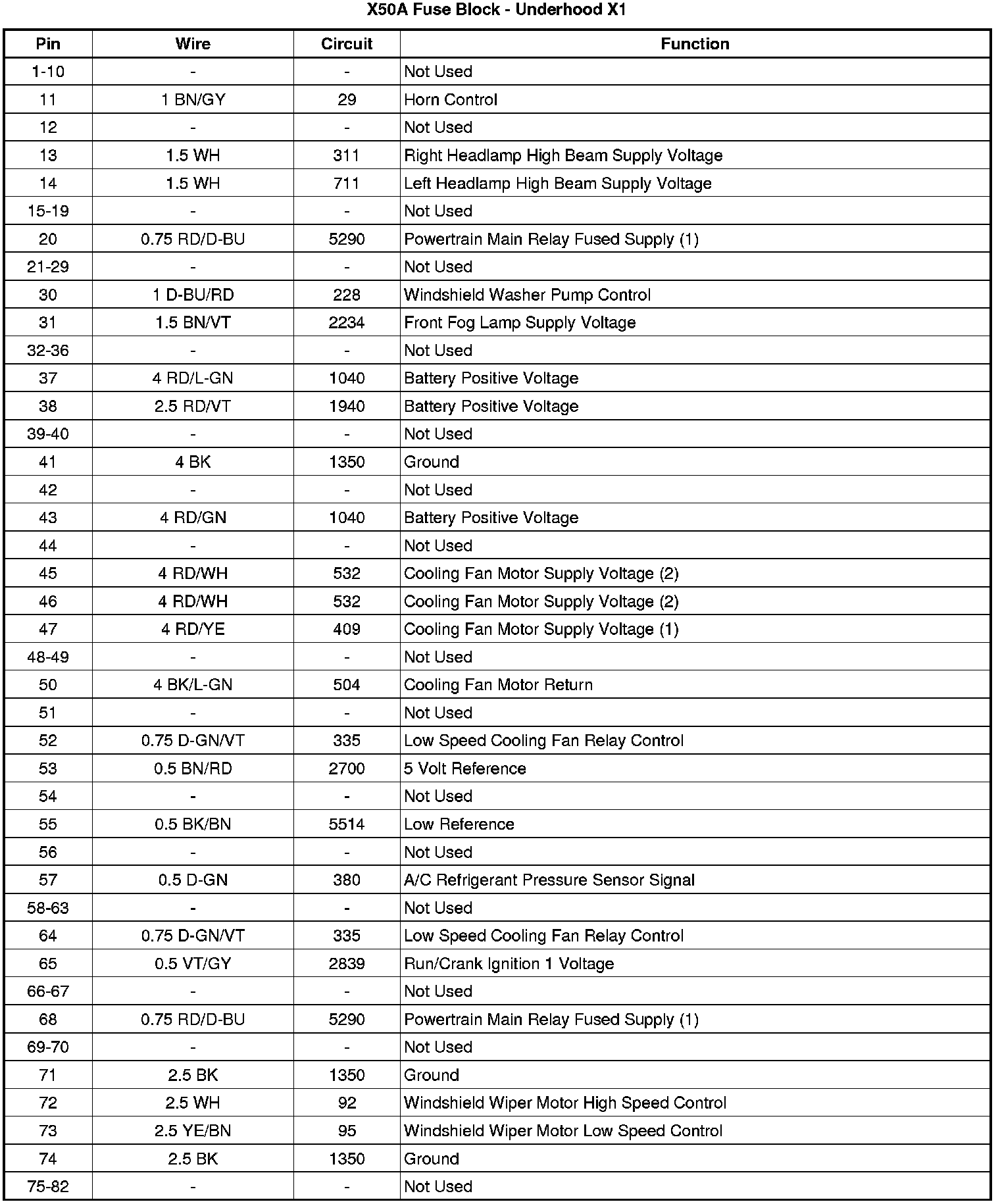 X50A Fuse Block - Underhood X1